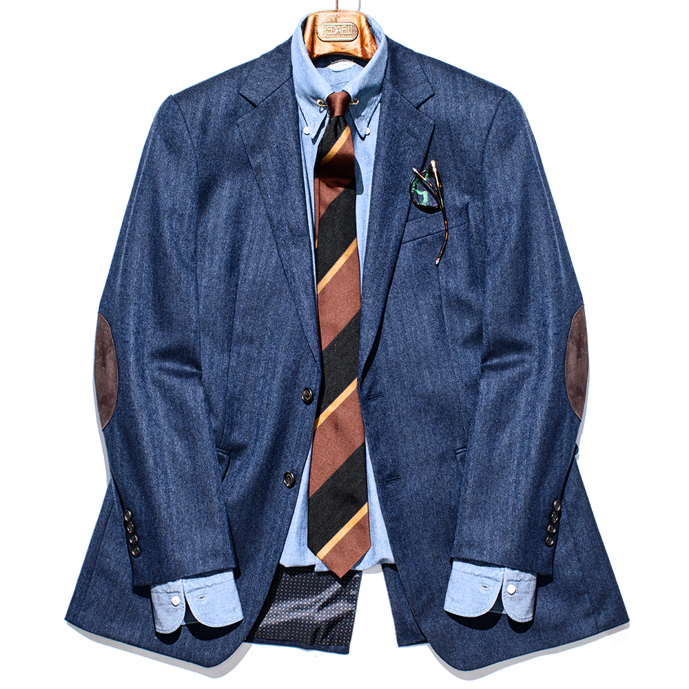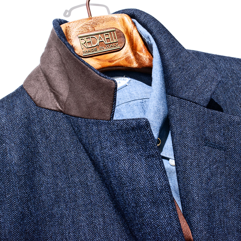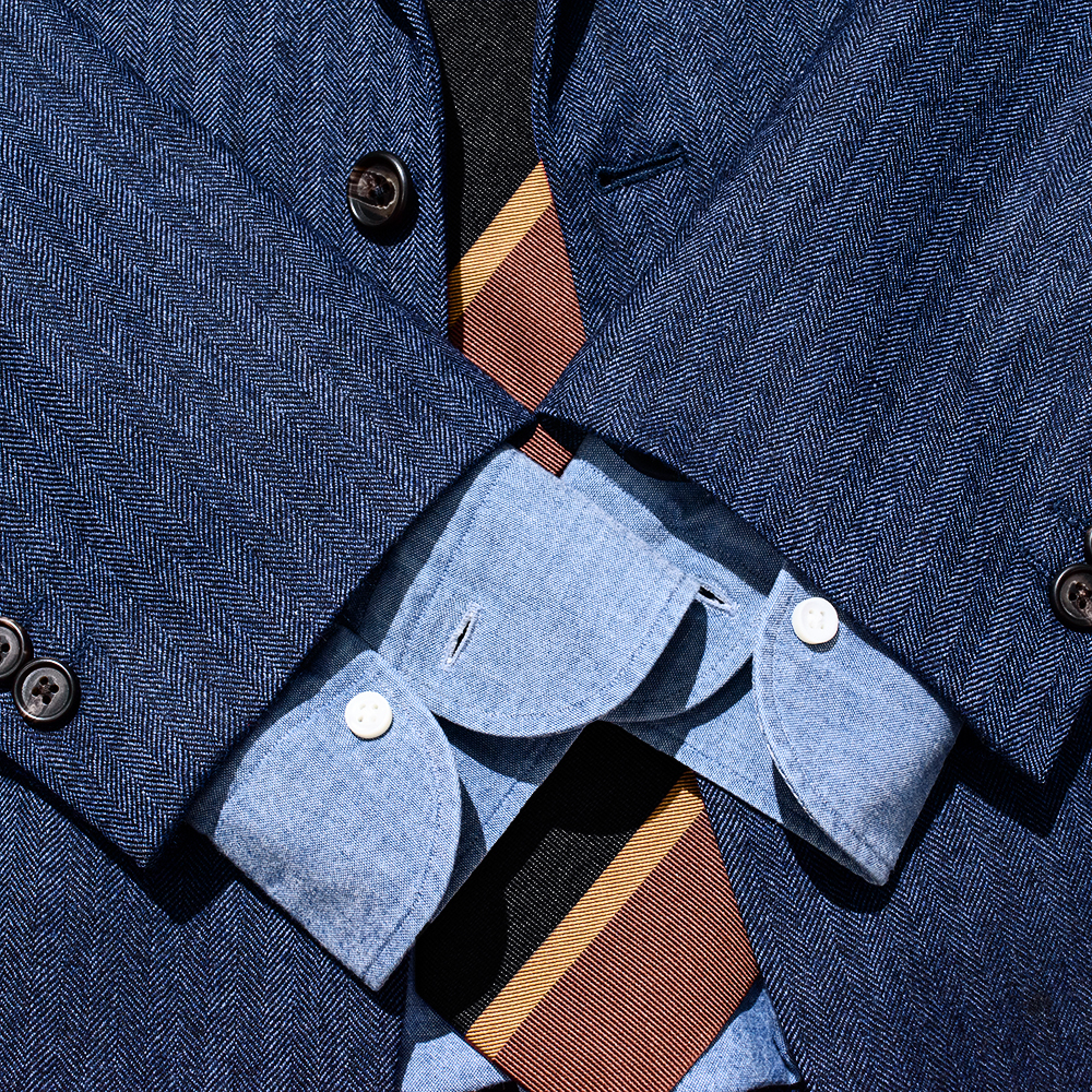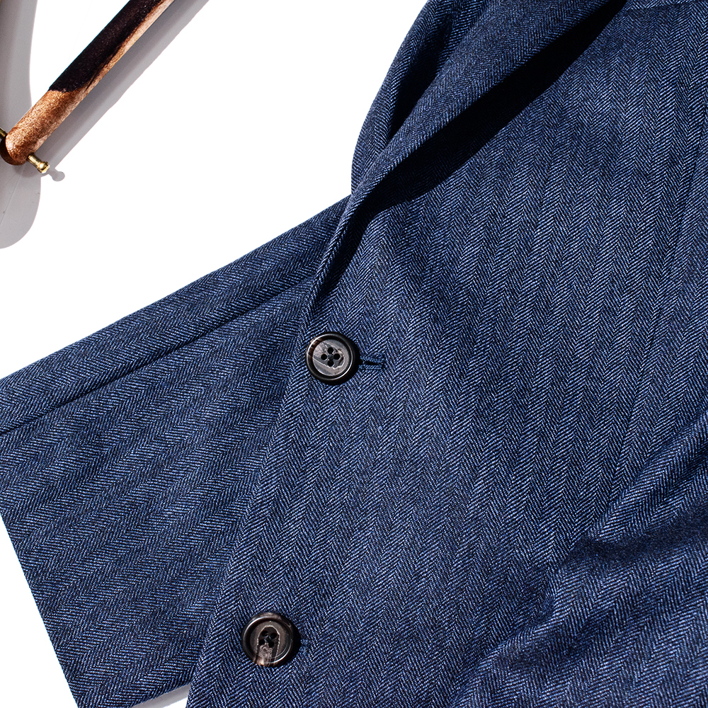 さりげないヘリンボーン織り、奥深い色味の美しいブルーカラー。