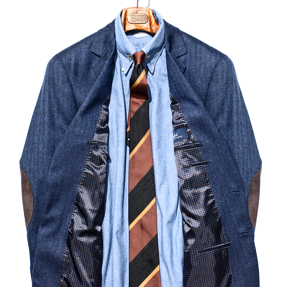 レザーライクな襟裏・エルボーパッチ仕様、等ラルフローレンらしい意匠を凝らした細部の造りも大変魅力です。