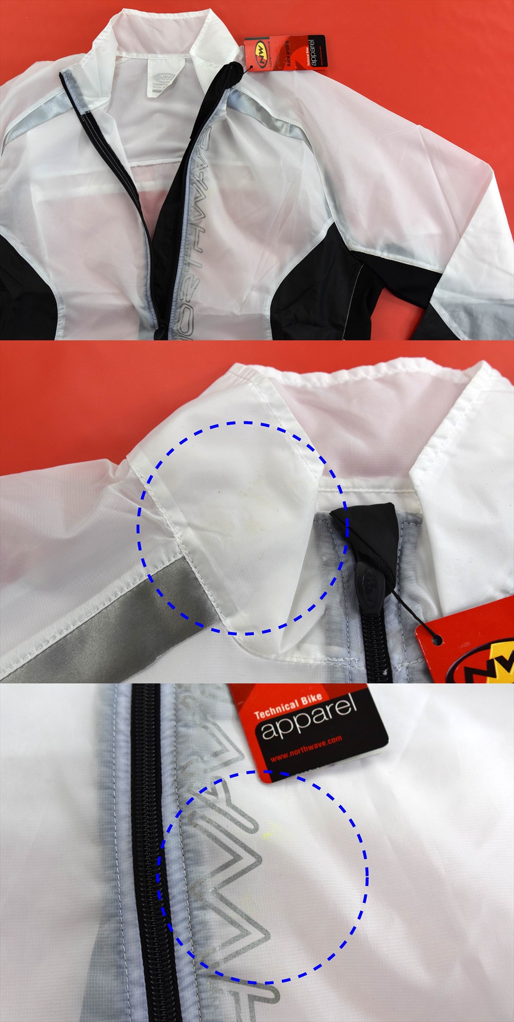 OUTLET商品・・・汚れありです、フロントジッパー横のNorthwaveの文字が薄くなっているというか文字の素材が他の場所についってしまったのか?というような状態です。