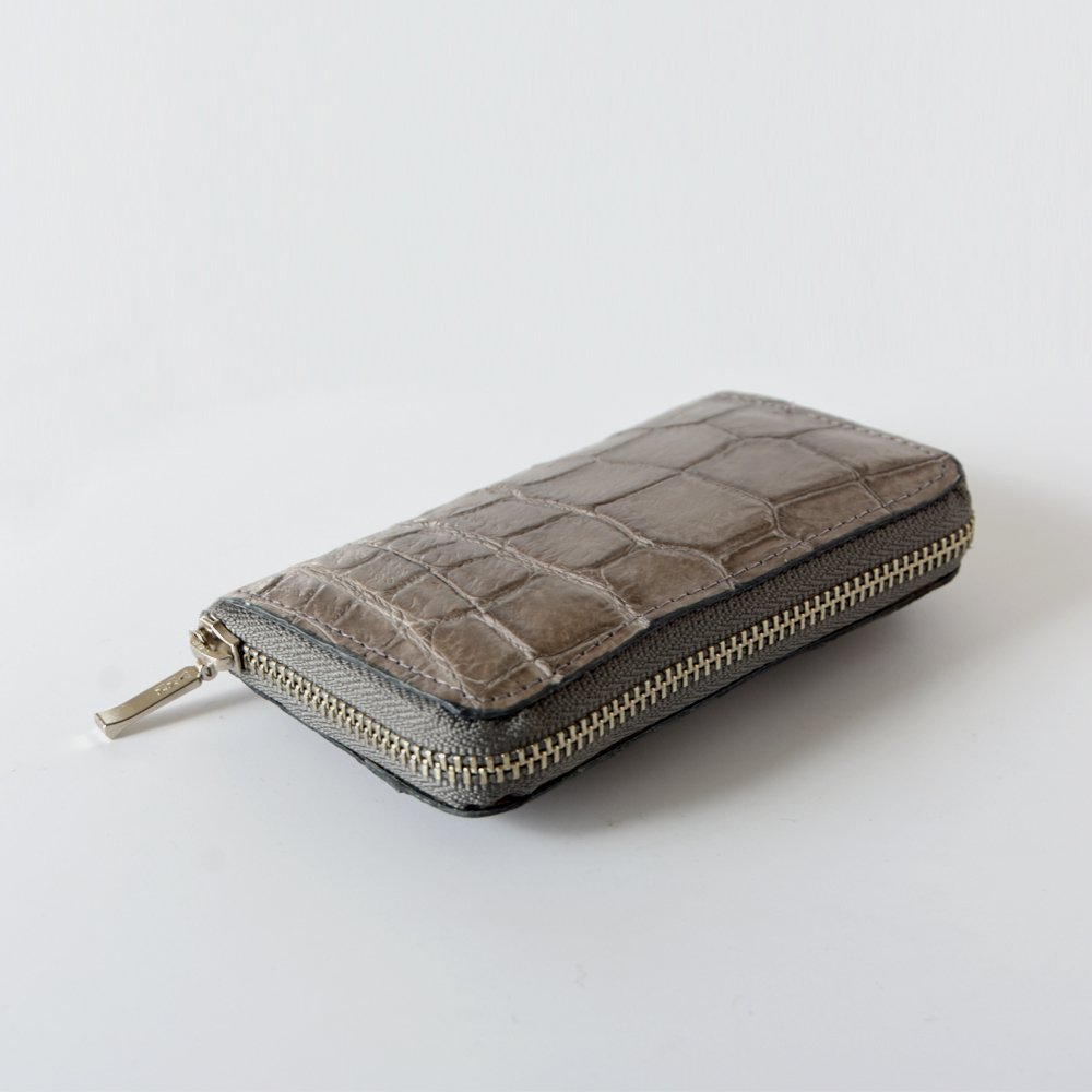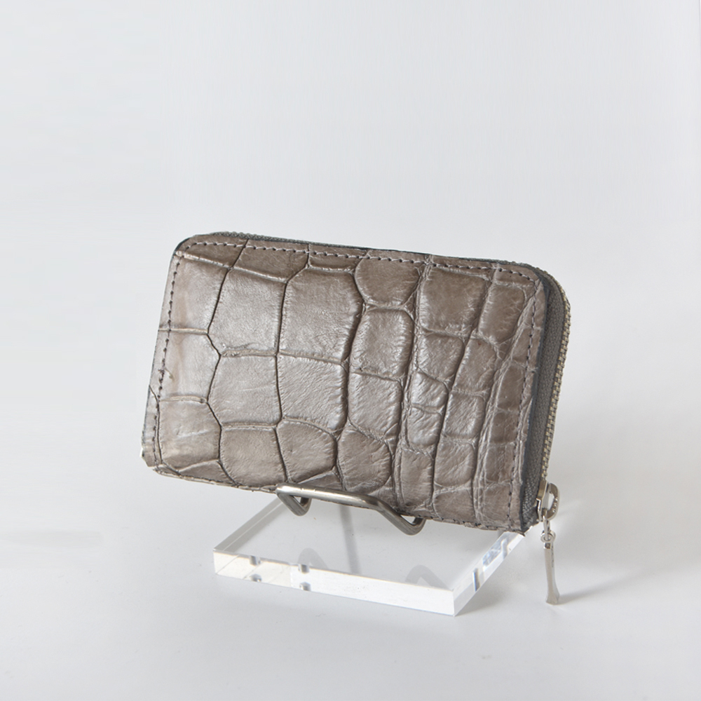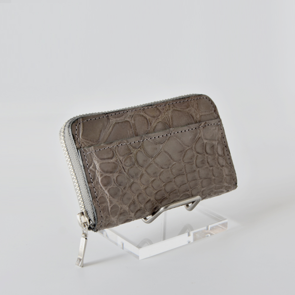 送料込み◆現品お届け◆[Laquju] クロコダイル ミニコインケース メンズ レディース 本革 財布 小銭入 レザー◆つや消しシルクグレー