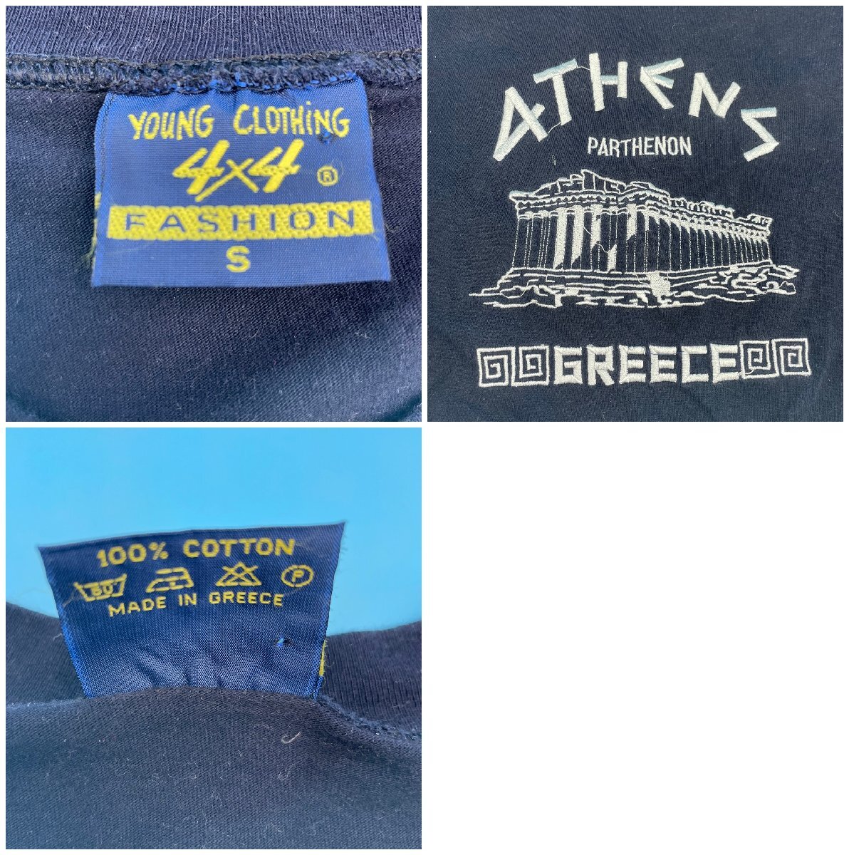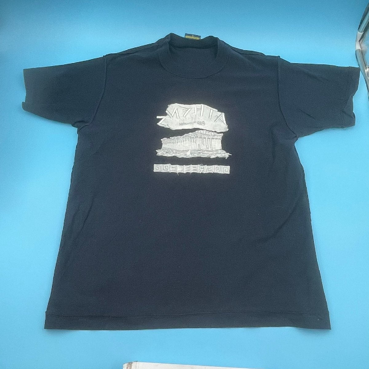 【19065Q033】Tシャツ ギリシャ製 Sサイズ お土産物 ? パルテノン宮殿 刺繍 紺色 メンズ? 古着 洋服 ビンテージ 半袖 Greece