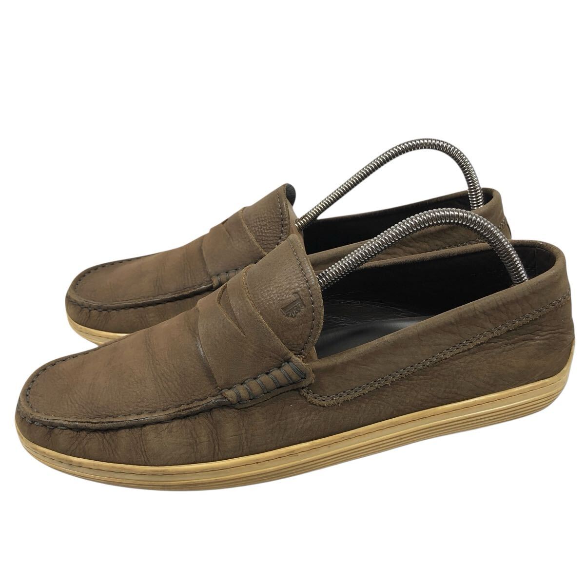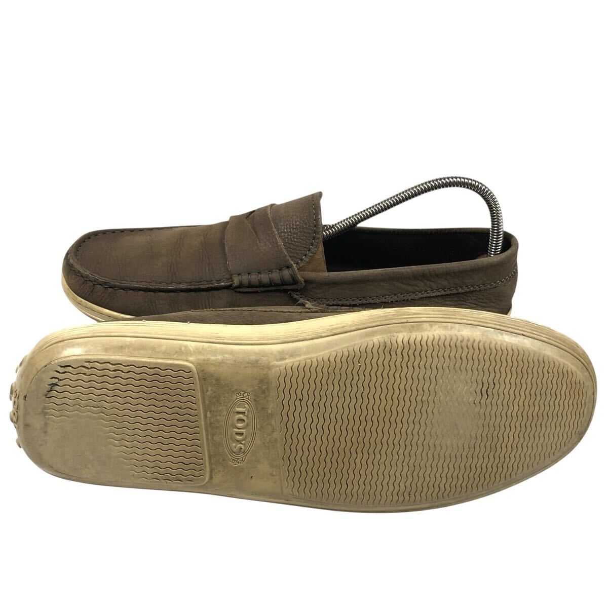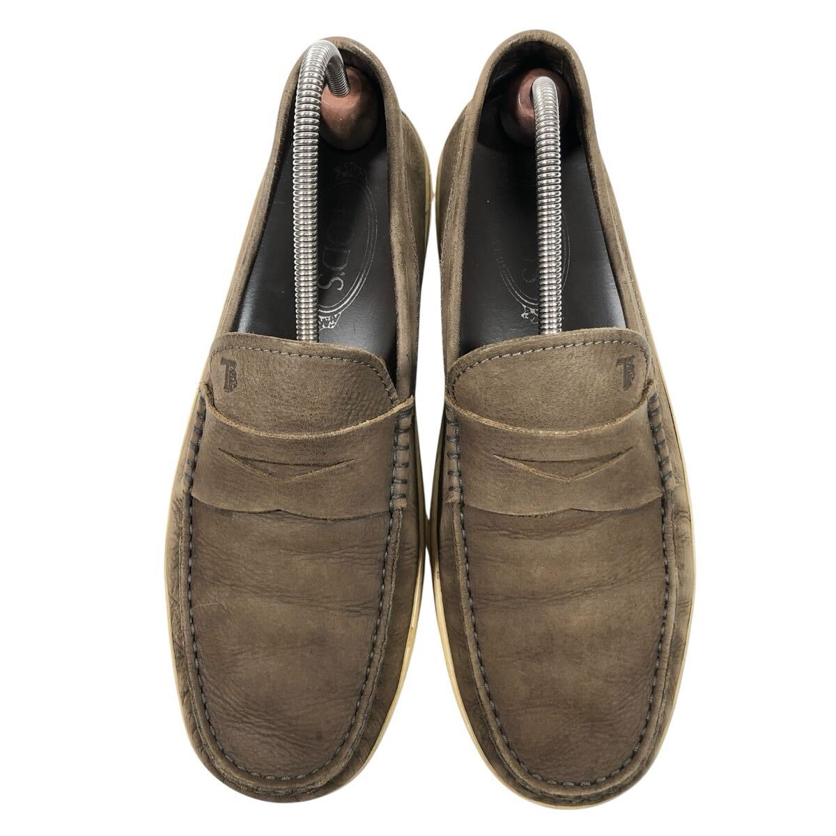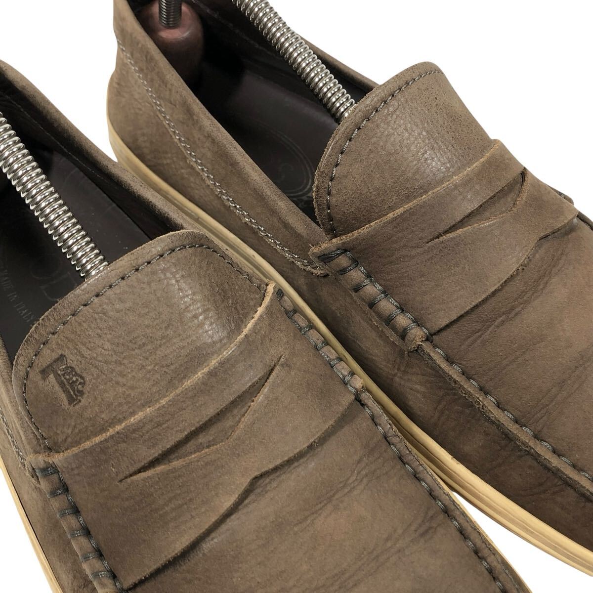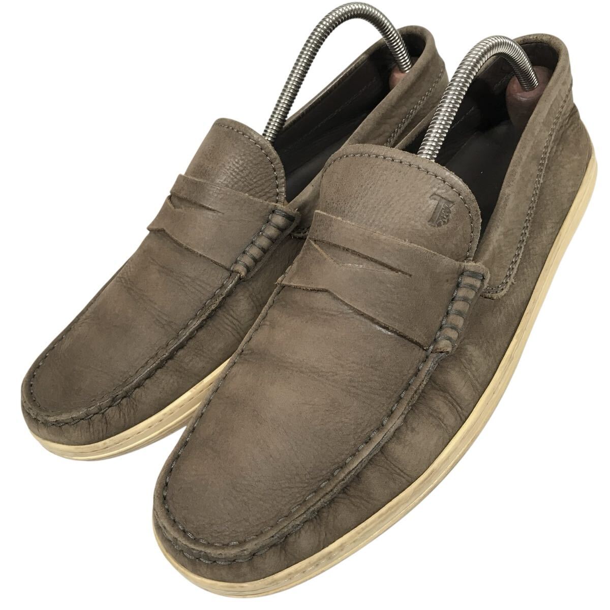 【トッズ】本物 TOD’S 靴 25.5cm Tロゴモチーフ ローファー スリッポン スニーカー カジュアルシューズ ヌバックレザー メンズ 伊製 6 1/2