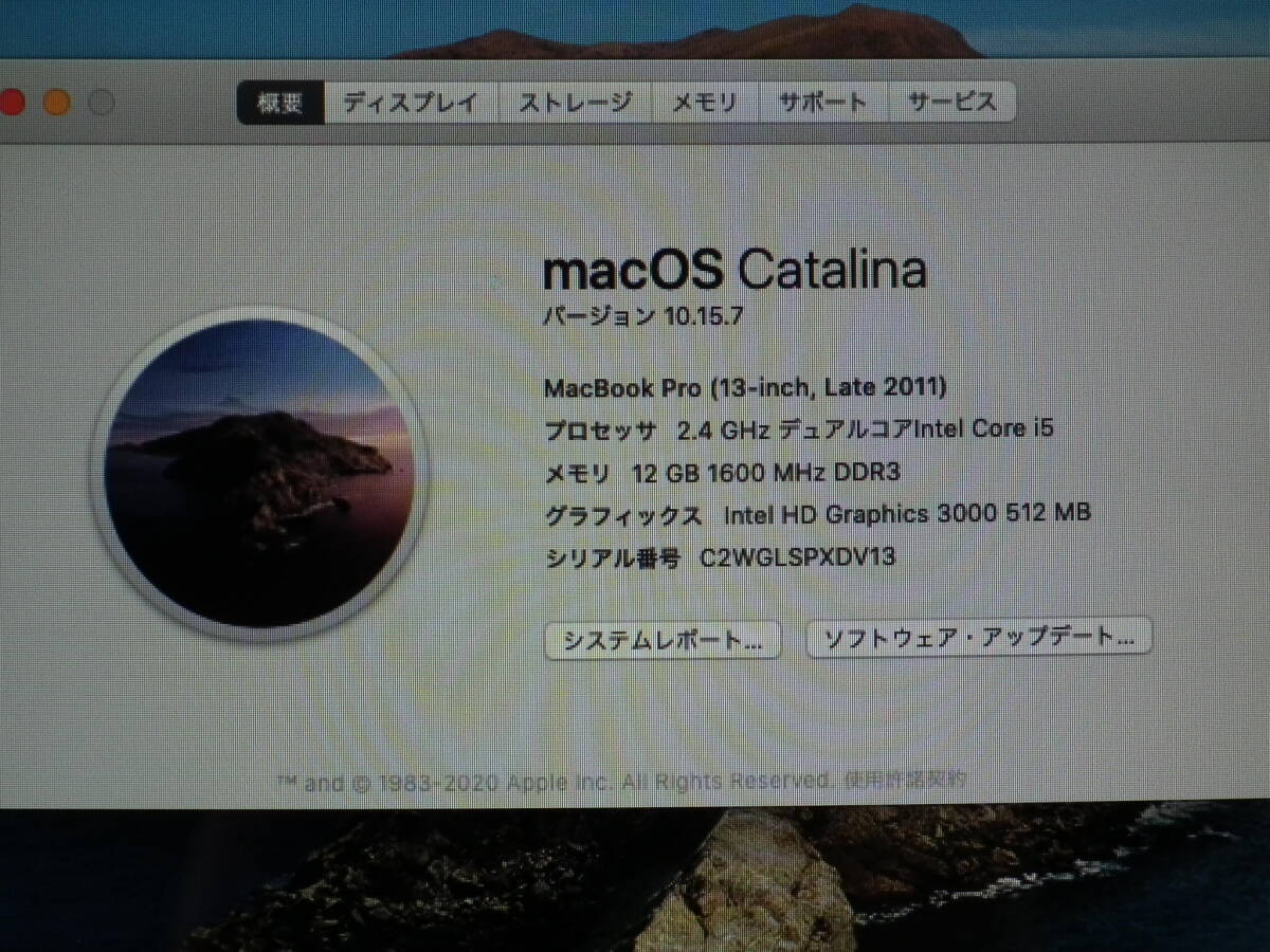 Apple MacBook Pro 13inch mid 2011 Core i5 SSD:(360GB) メモリー:12GB 中古の出品です。