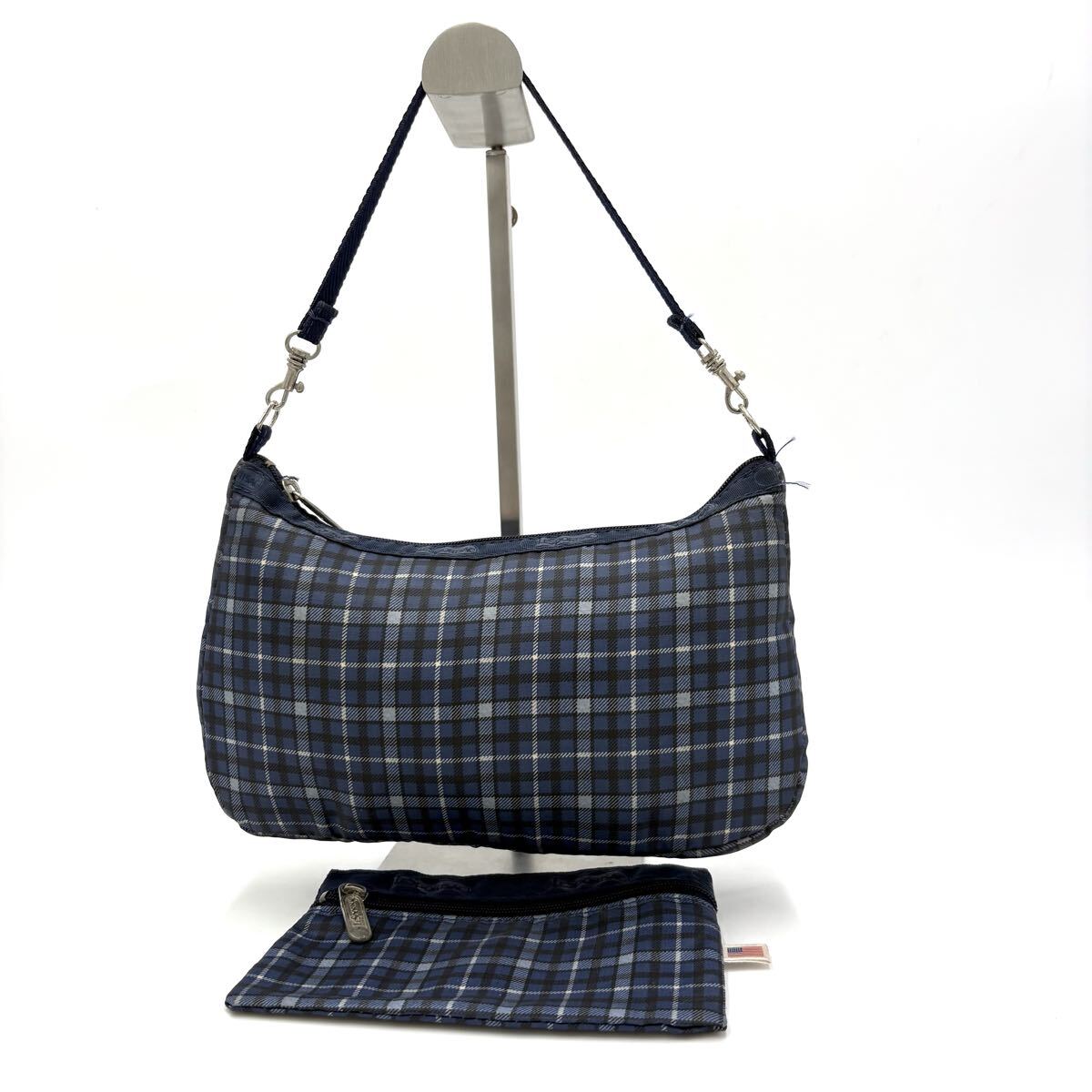 C ■ 米国製 'ミニポーチ付き' LESPORTSAC レスポートサック チェック柄 ハンドバッグ 手提げ 肩掛け鞄 レディース 婦人鞄 カバン USA製