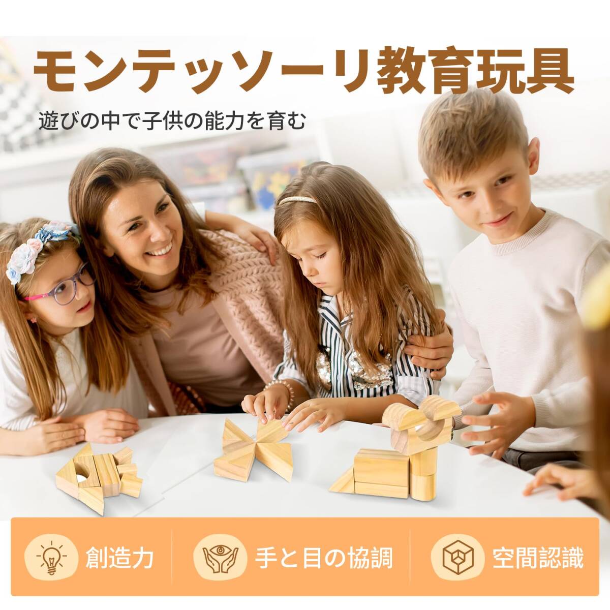【創造力、論理思考力、問題解決能力を鍛える遊び】どのように積み木を組み合わせて安定した構造を作るかを考えることで 想像力や論理思考力が向上し、問題解決能力を養うことができます。単純な形の積み木はごっこ遊びにもおすすめ。他のおもちゃと組み合わせて遊ぶと遊びの幅が広がります。