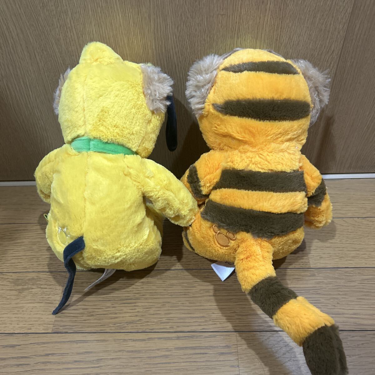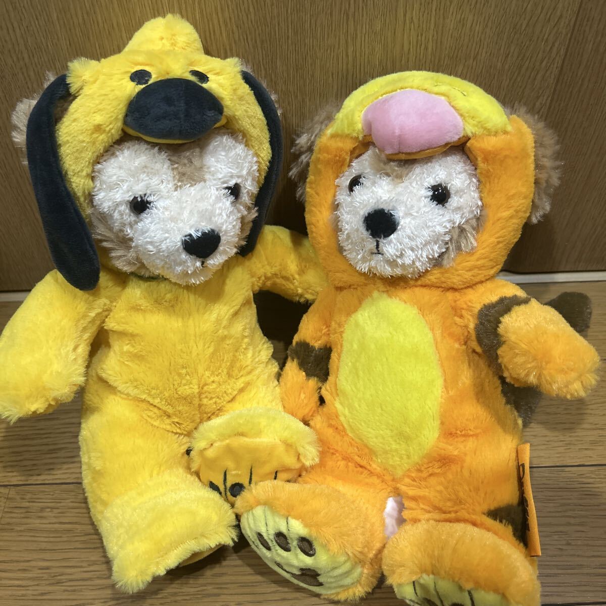 海外ディズニーのダッフィーのぬいぐるみです。干支の虎モチーフのティガー、戌モチーフのプルートの着ぐるみを着たダッフィー です。新品未使用品です。