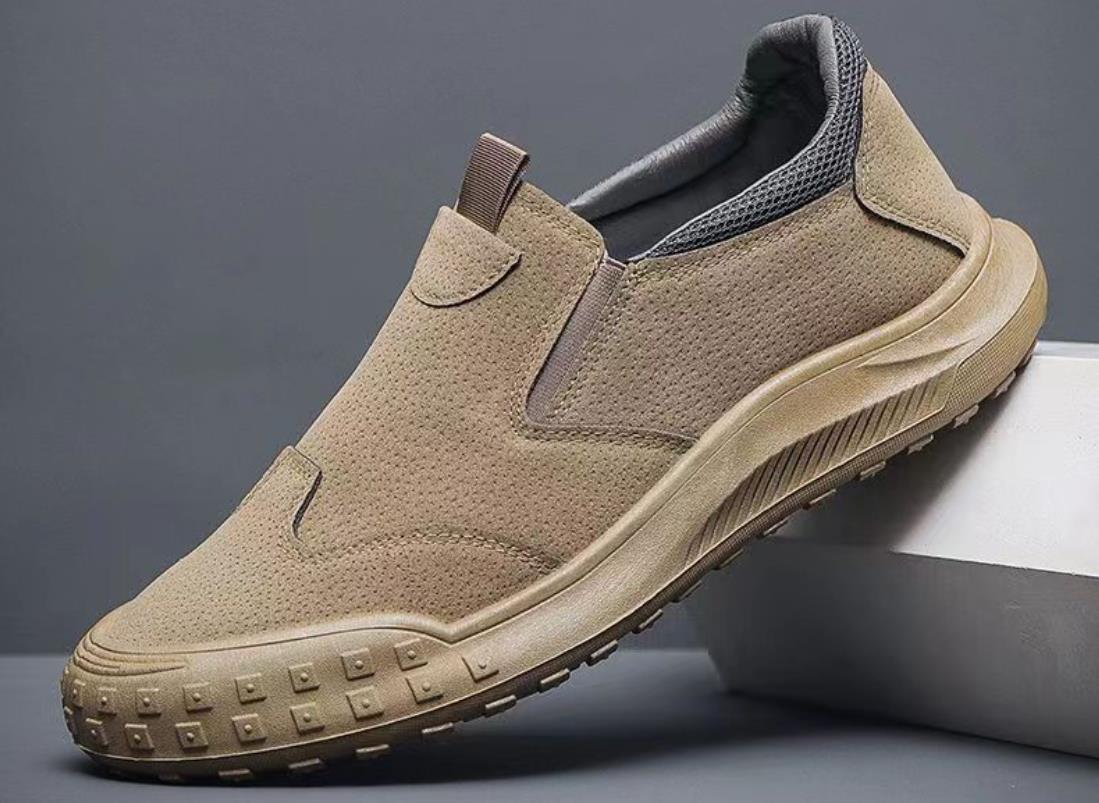 スニーカー メンズ スエード風 スリッポン フラット ベージュ  26cm