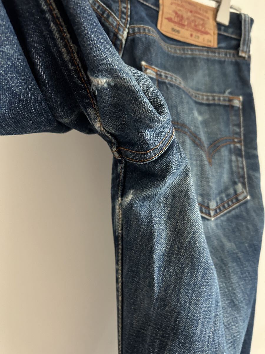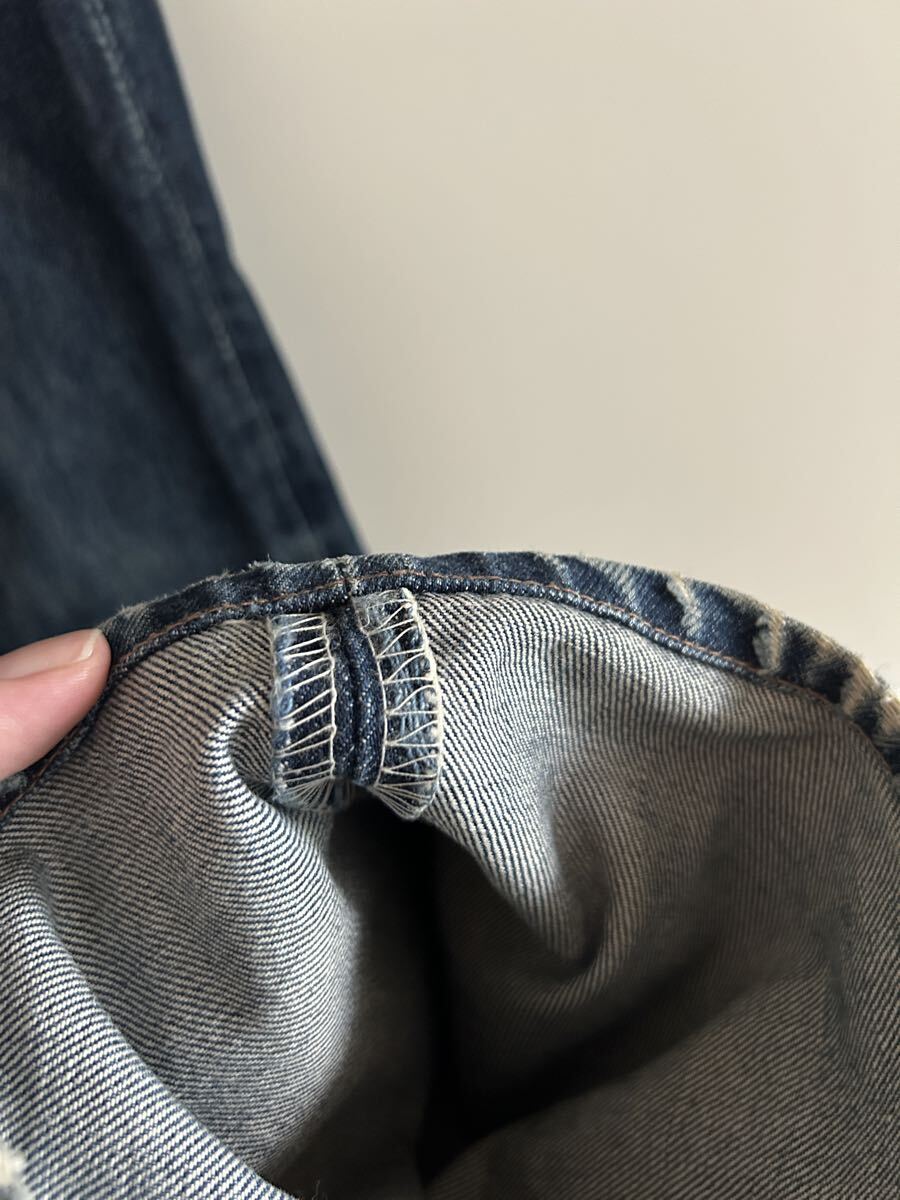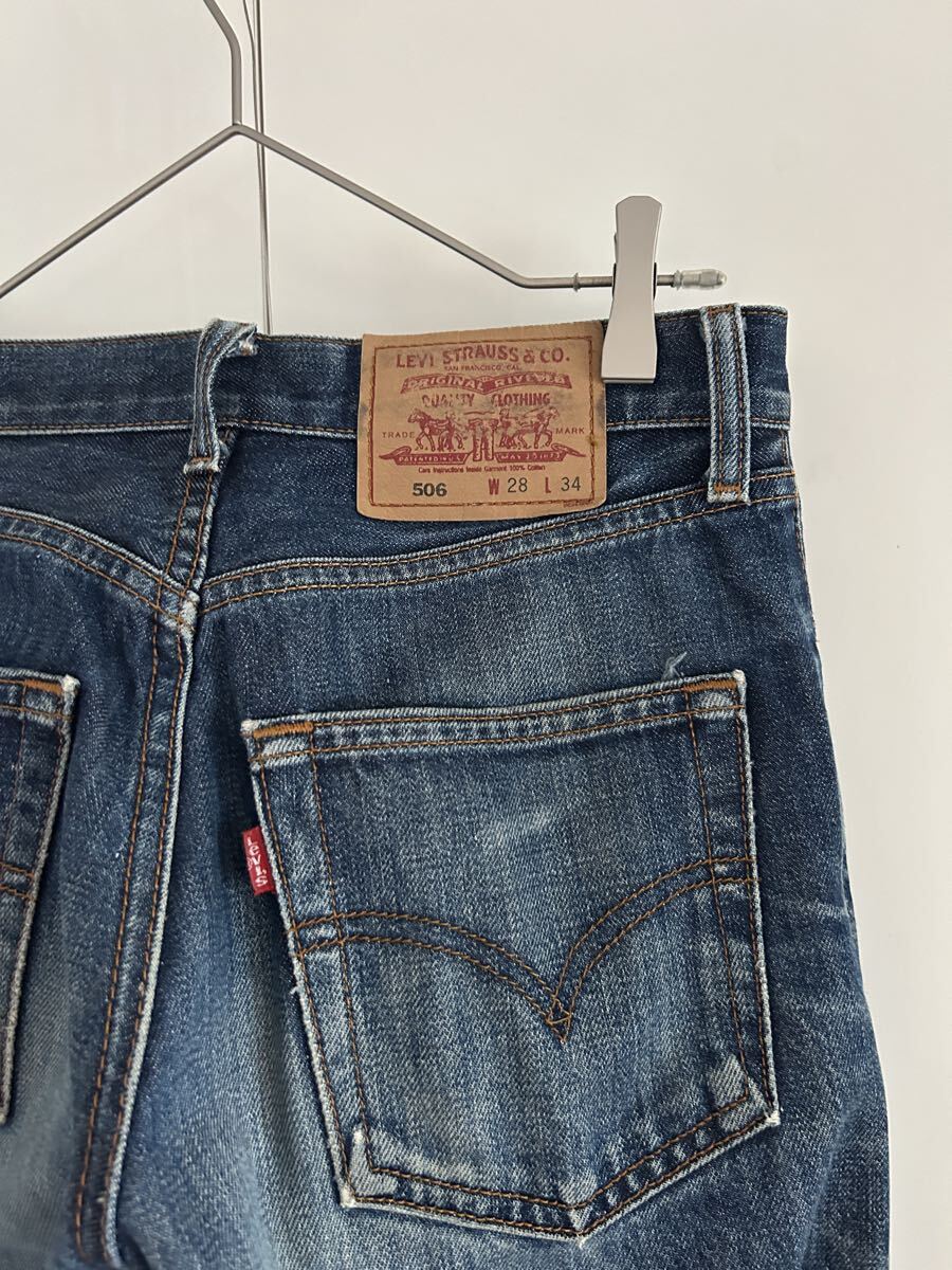 深みのあるインディゴに激しい色落ちと擦れが加わり、穿き込まれた唯一無二の風合いをまとった Levi's 506。1999年製のモデルで、ボロ好きにも響く存在感ある仕上がりです。経年によるダメージが魅力となり、古着ならではの迫力ある雰囲気を楽しめます。