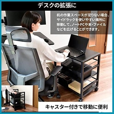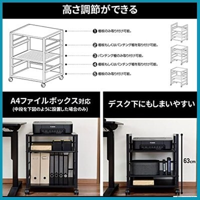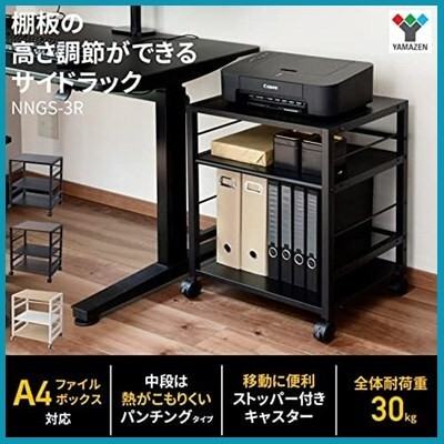 山善(YAMAZEN) デスク サイドワゴン 幅53×奥行40×高さ63cm A4対応 キャスター付き 天板・棚板高さ調節可能 組立品 ブラック/ブラック NNGS-3R(BK/SBK) 在宅勤務