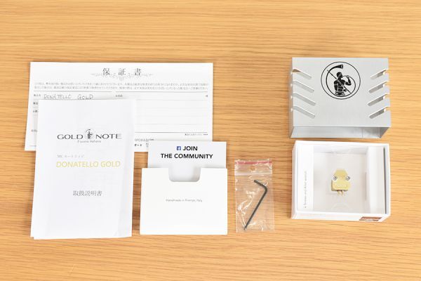 GOLD NOTE DONATELLO GOLD ゴールドノート / MCカートリッジ / トライオード正規品 DONATELLOは、このカテゴリーで最高を目指したMCカートリッジです。 耐久性に優れたアルミニウム構造により、堅牢でありながら非常に軽量です。本体の重さはわずか 7 グラムで、あらゆるトーンアームと組み合わせることができ、幅広いシステムで素晴らしいサウンドを再現します。 ■ 付属品 針カバー、取り付けネジ、六角レンチ、取扱説明書、ケース ■ 動作 音出し動作確認済みです。 使用時間短く、針先良好です。 ■ 外装 特に傷や汚れはなく綺麗です。 ■ 主な仕様 周波数特性:10Hz-40kHz 出力電圧:0.5mV 針圧:1.8g-2.1g インピーダンス:40Ω 推奨負荷抵抗:470Ω チャンネルセパレーション:24dB以上 カンチレバー:アルミニウム スタイラスチップ:マイクロ楕円ダイヤモンド 質量:7g 発売時期:2023年12月~ 定価:198,000円(税込) 配送方法 |