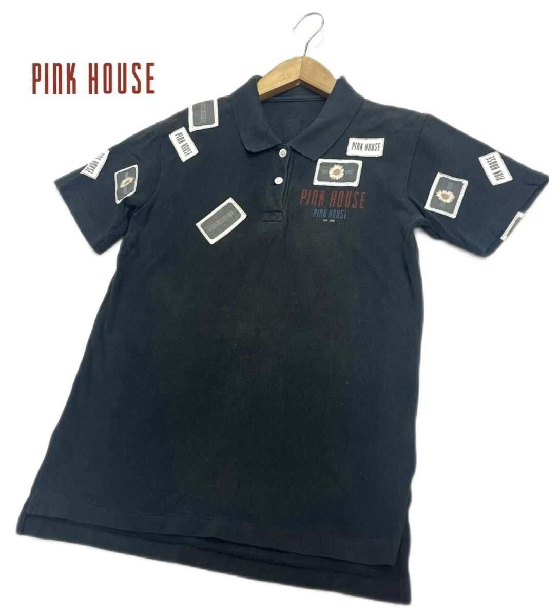 PINK HOUSE★ピンクハウス★ワッペン 半袖 ポロシャツ カットソー/黒系