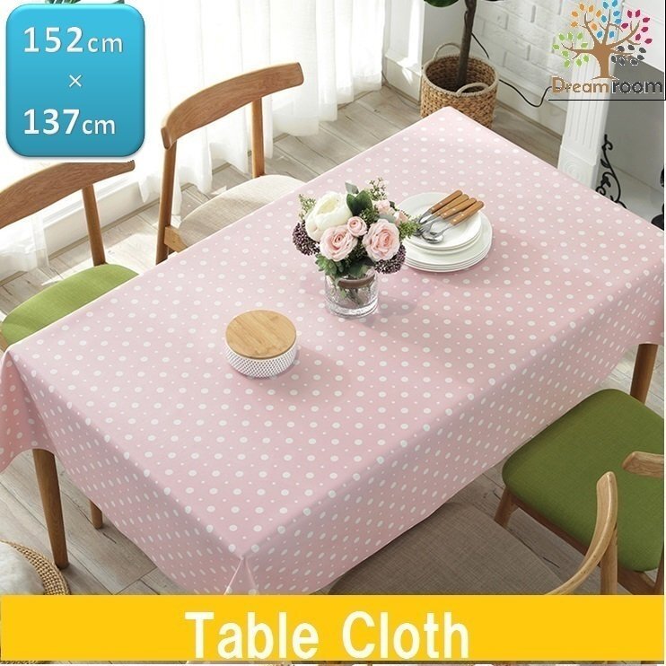 テーブルクロス ピンク水玉 PVC製 防水 防油 加工 長方形 152cm×137cm ランチョン ティーマット テーブルリネンセットI-006