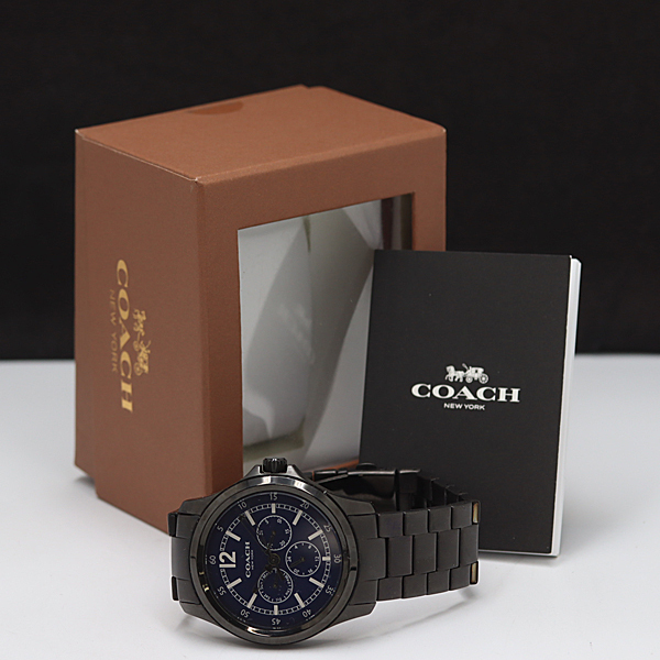 1円 保/箱付 稼働 コーチ CA.94.2.95.1197 QZ ブルー文字盤 メンズ腕時計 0055000 8MGT SMZ