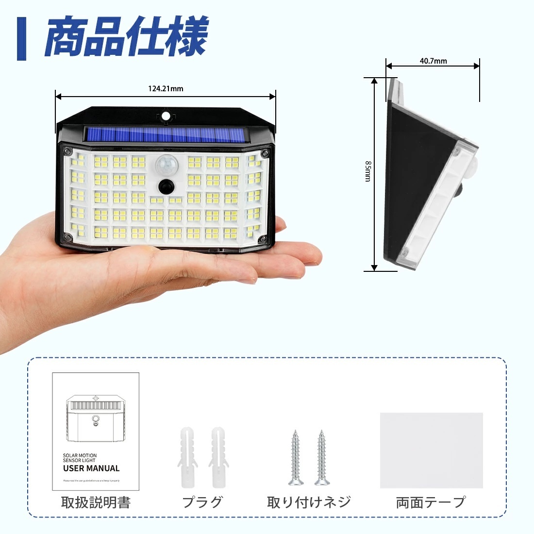 セット内容 ソーラーライト、両面テープ、プラスティックアンカー、ネジ