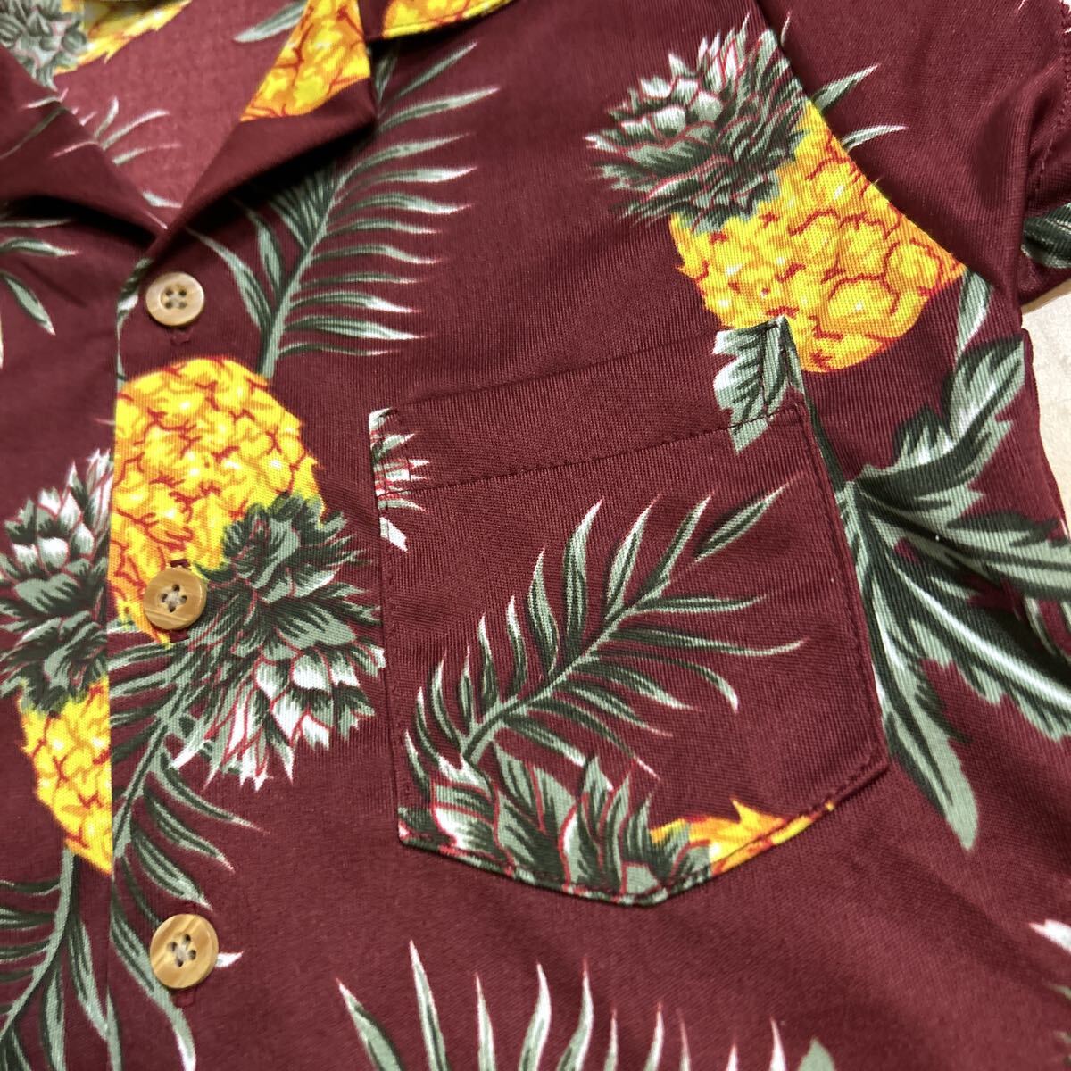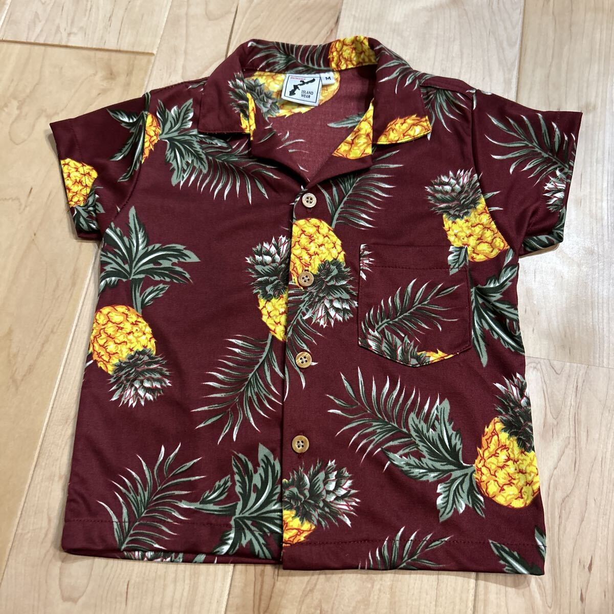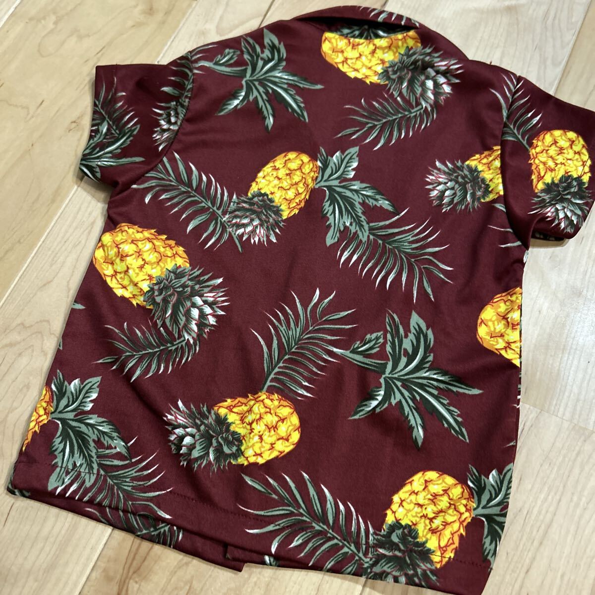 子供 90-100 アロハシャツ 沖縄 半袖 ハワイアン シャツ 総柄 M ワインレッド パイナップル