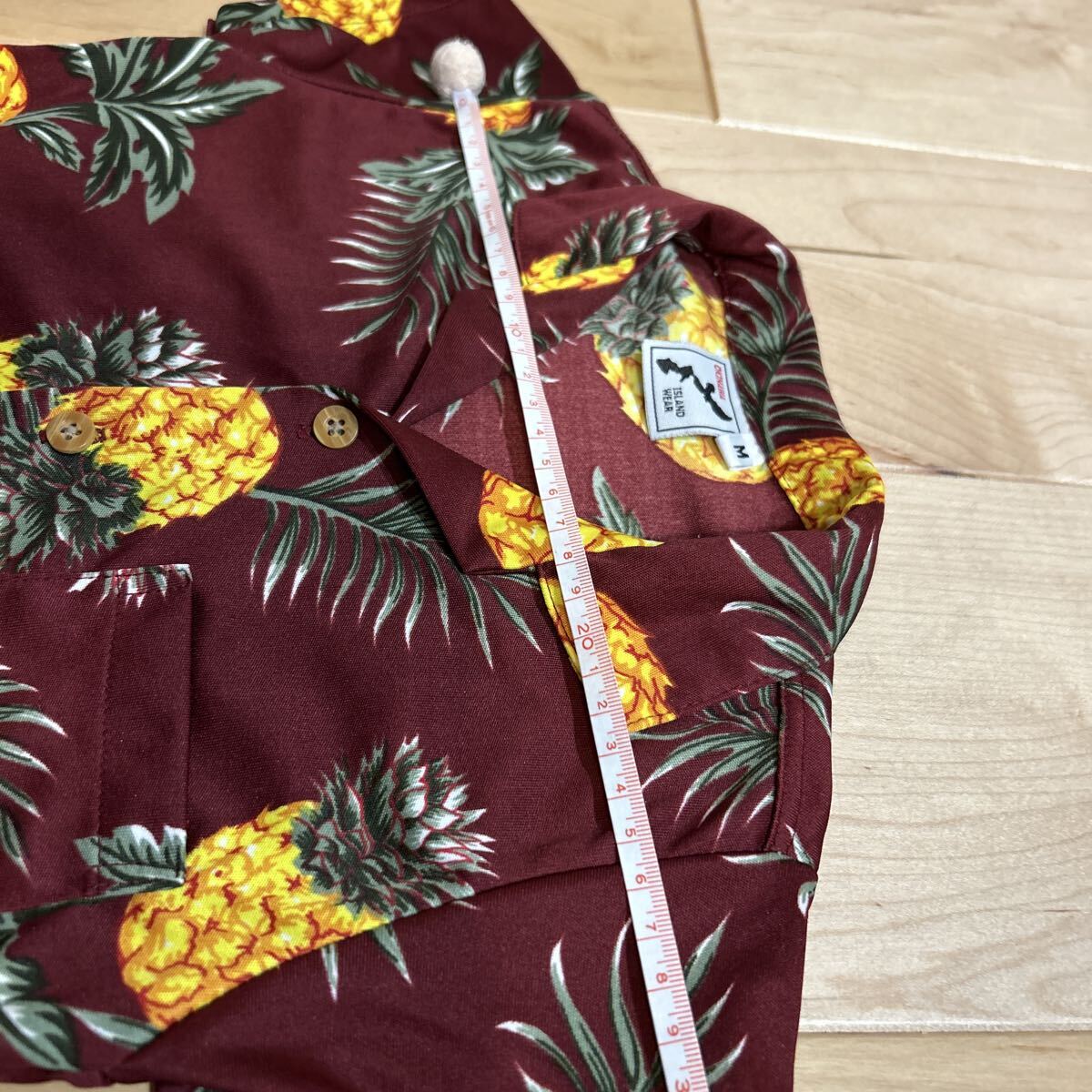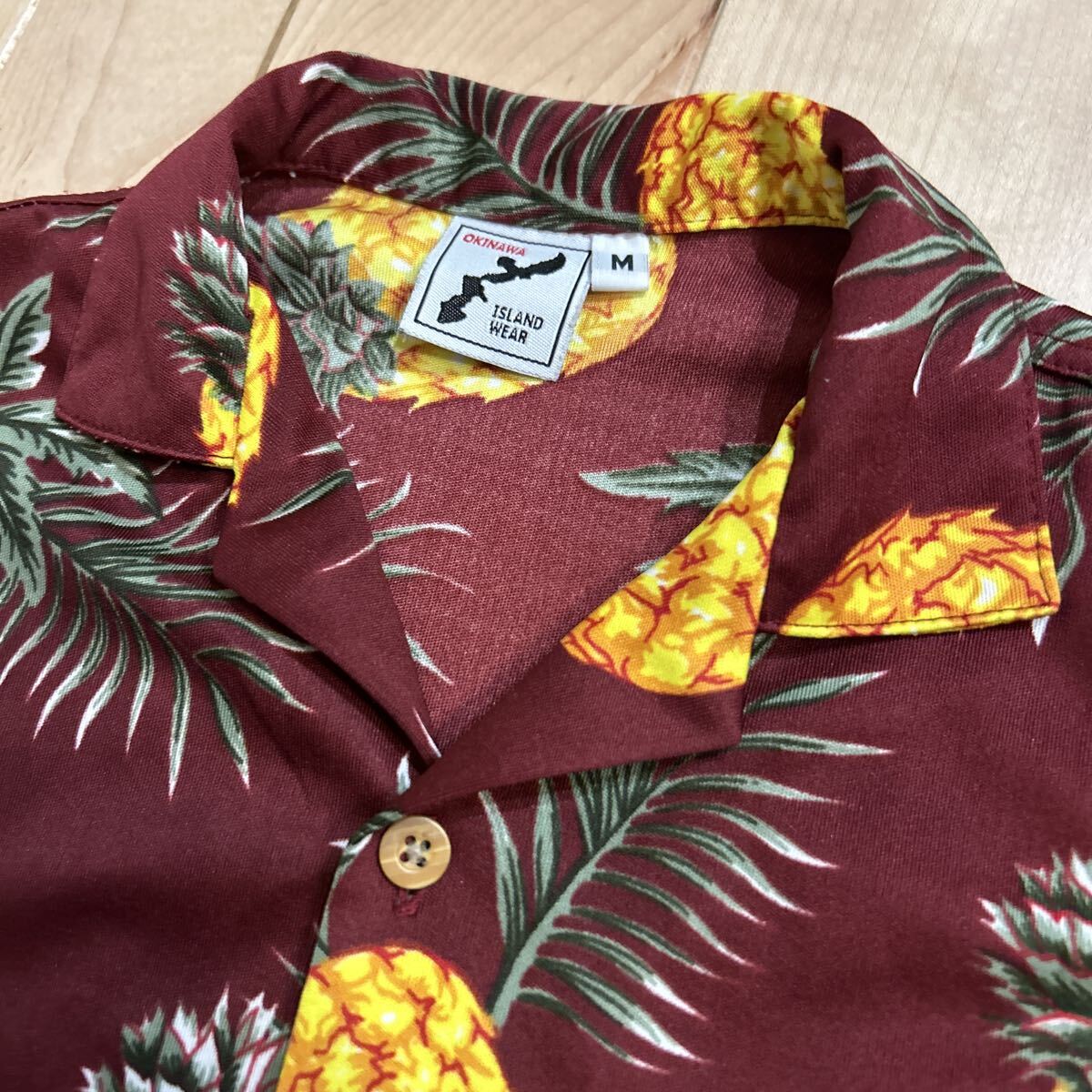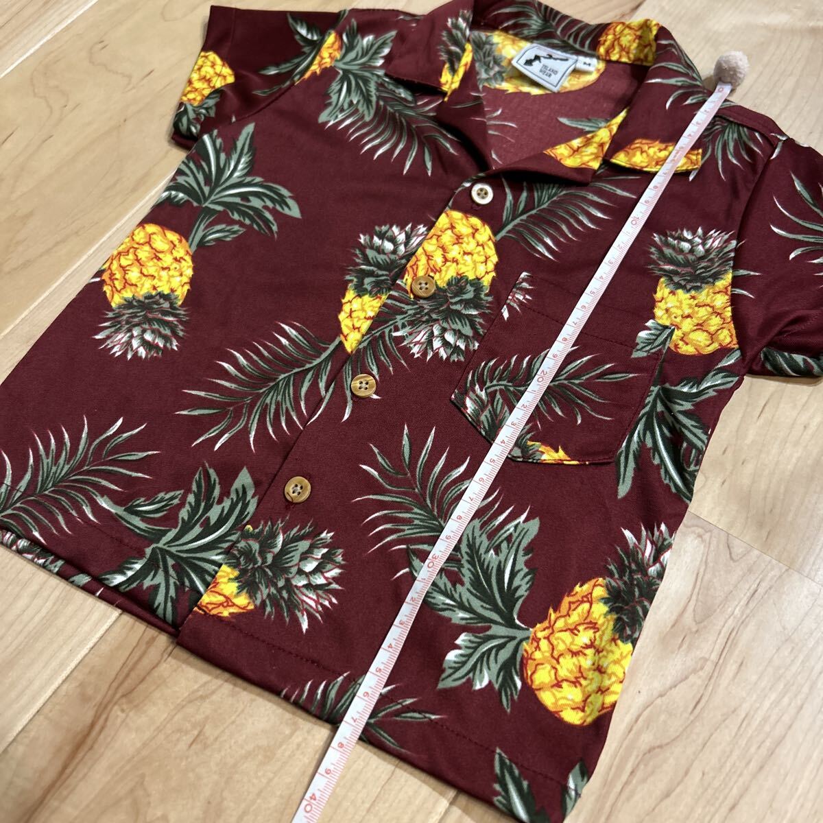 子供 90-100 アロハシャツ 沖縄 半袖 ハワイアン シャツ 総柄 M ワインレッド パイナップル