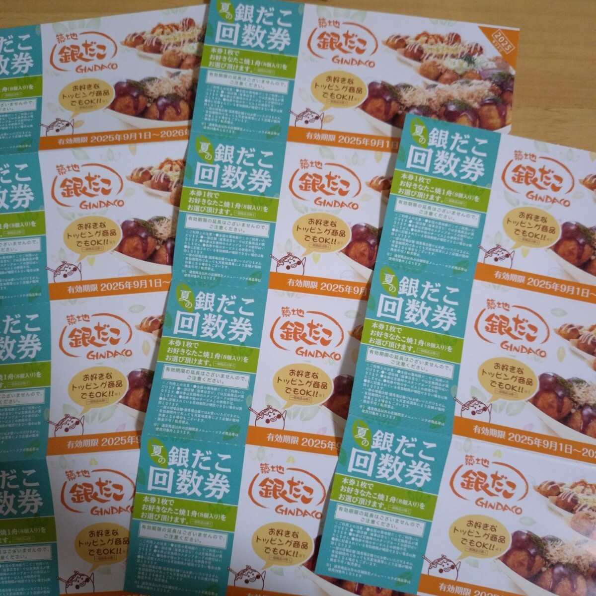 全国の築地銀だこで使える回数券(11枚まで対応可能) 送料無料(ミニレター)