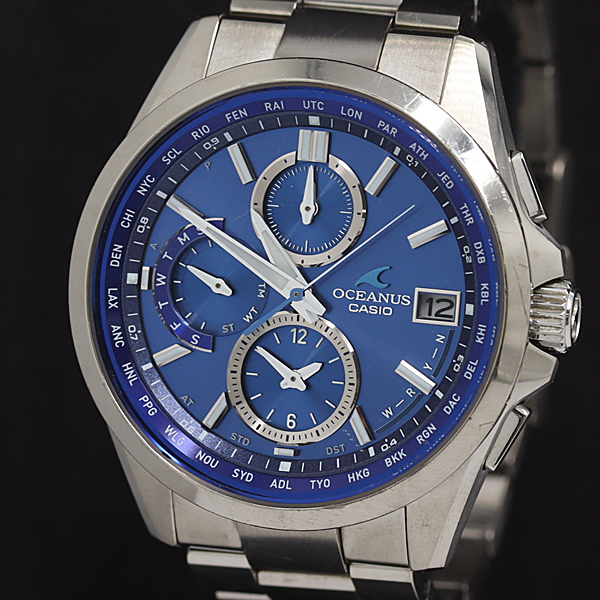 1円 稼働 カシオ オシアナス 0CW-T2600 電波ソーラー ブルー文字盤 メンズ腕時計 3973200 7OKT SMZ