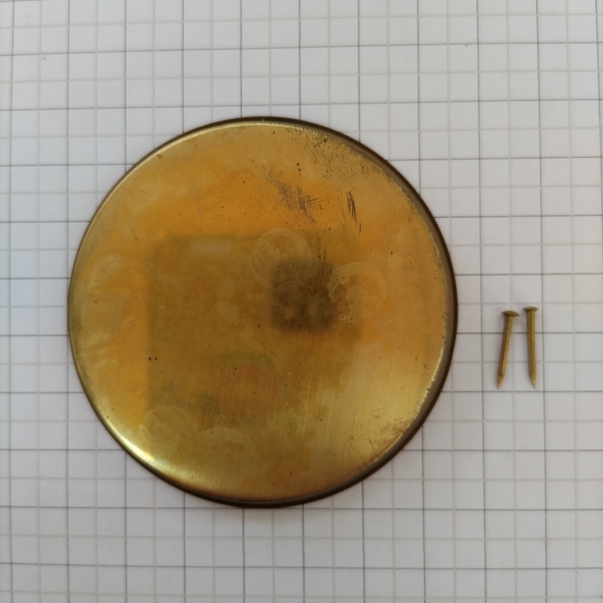 襖引手ツキエス真鍮仙徳虫喰平円丸 大(釘付き)です。