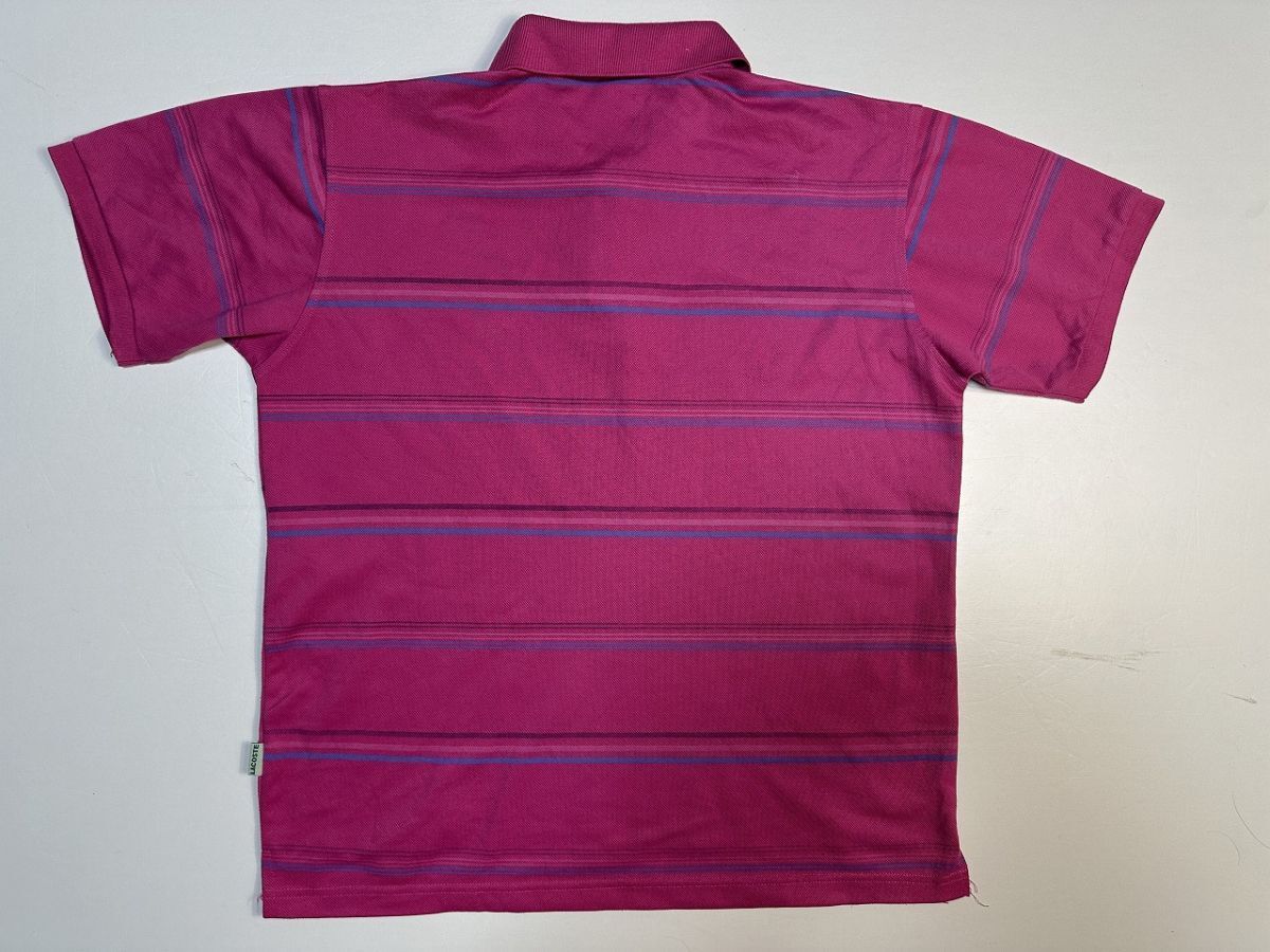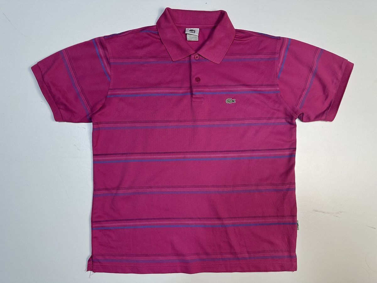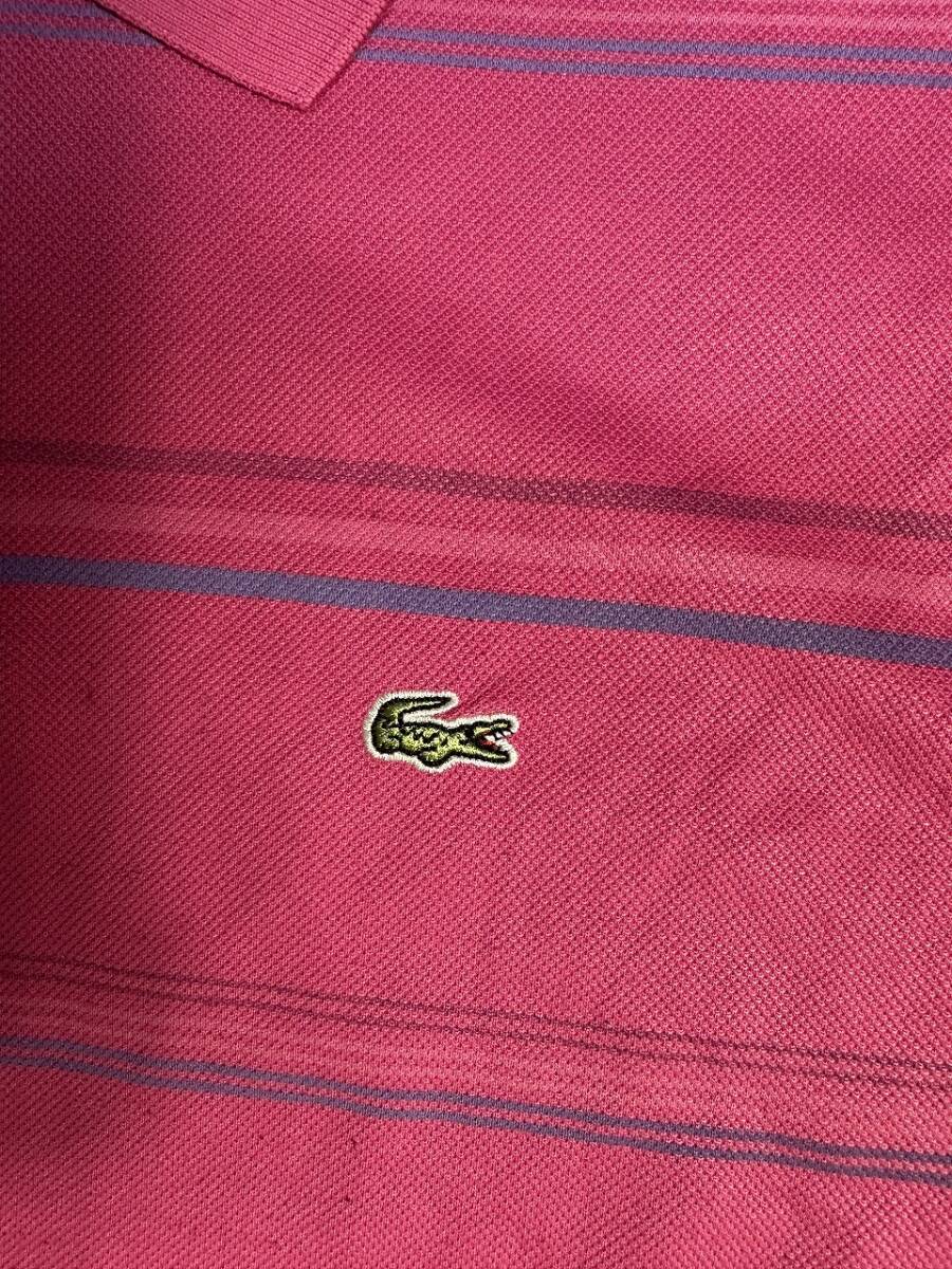 ●US USED LACOSTE ラコステ ポロシャツ ワニ ロゴ刺繍 ボーダー柄 半袖 ピンク×ブルー青【4(M)】鹿の子
