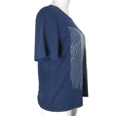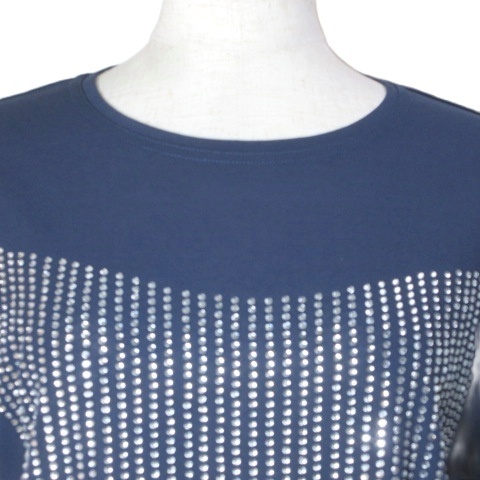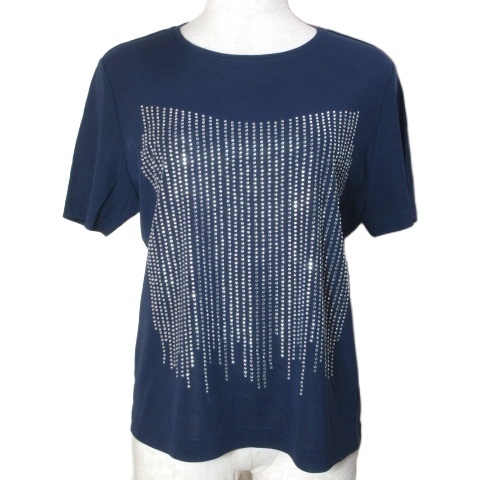 MIMO MODA ミモモーダ Tシャツ カットソー ラインストーン 半袖 42 L相当 紺 ネイビー X レディース