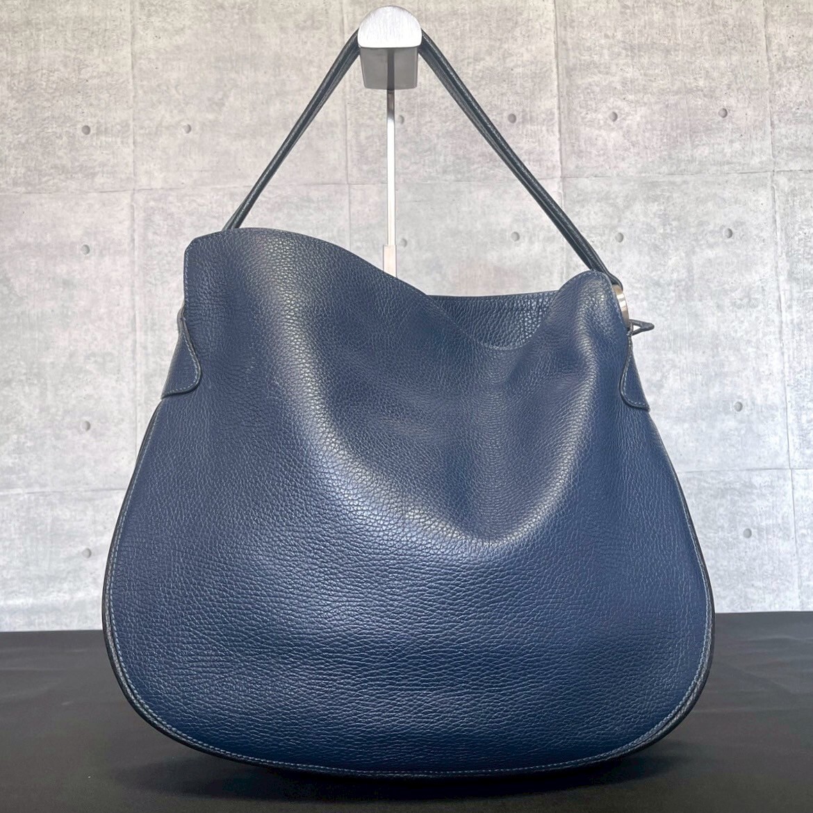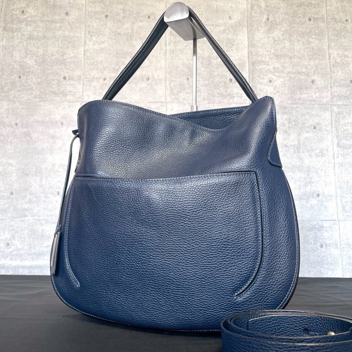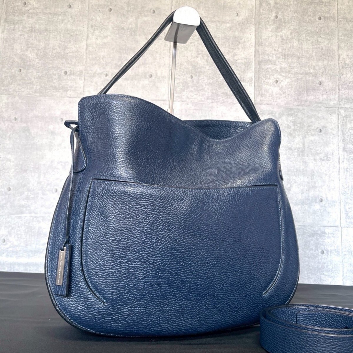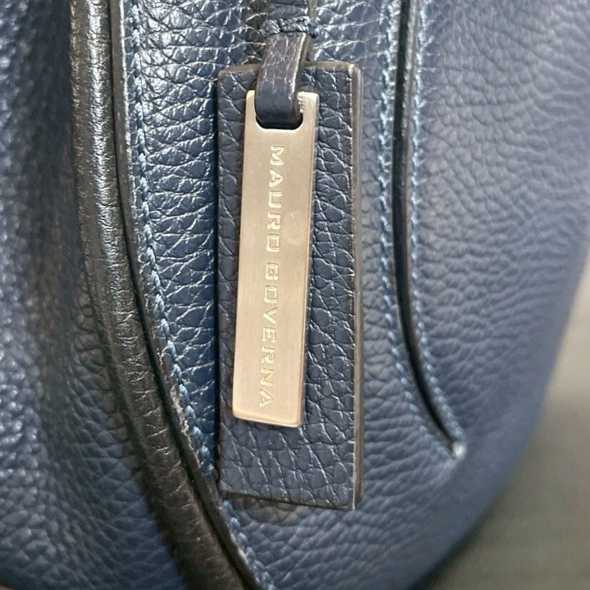 超美品 MAURO GOVERNA×WAKO マウロゴヴェルナ マウロゴベルナ ワコウ 銀座 和光 レザー ネイビー シルバー金具 2WAY ハンドバッグ