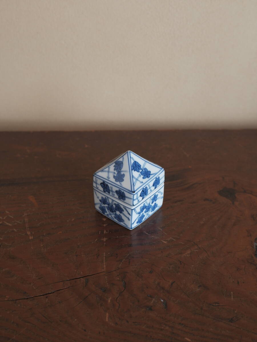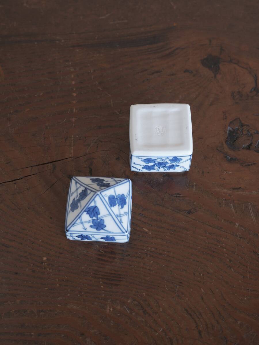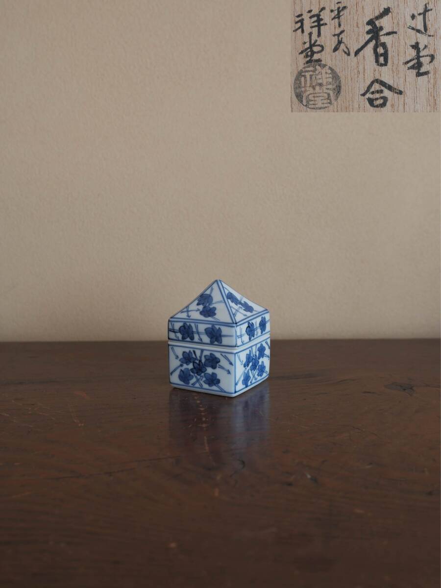 【青枠】手塚祥堂 辻堂 香合 香道具 染付 茶道具 箱付 古道具 時代物 美術品Q1877