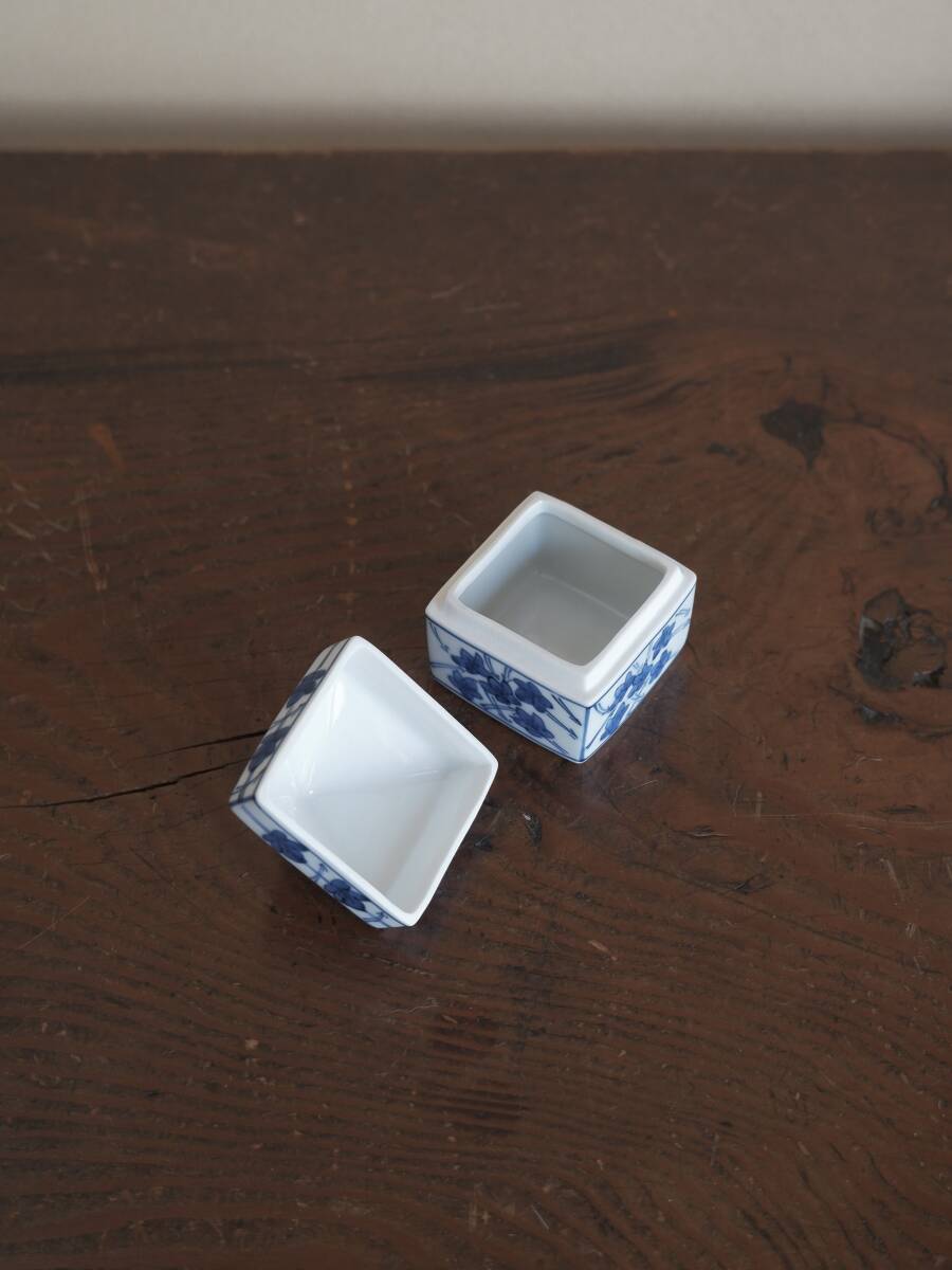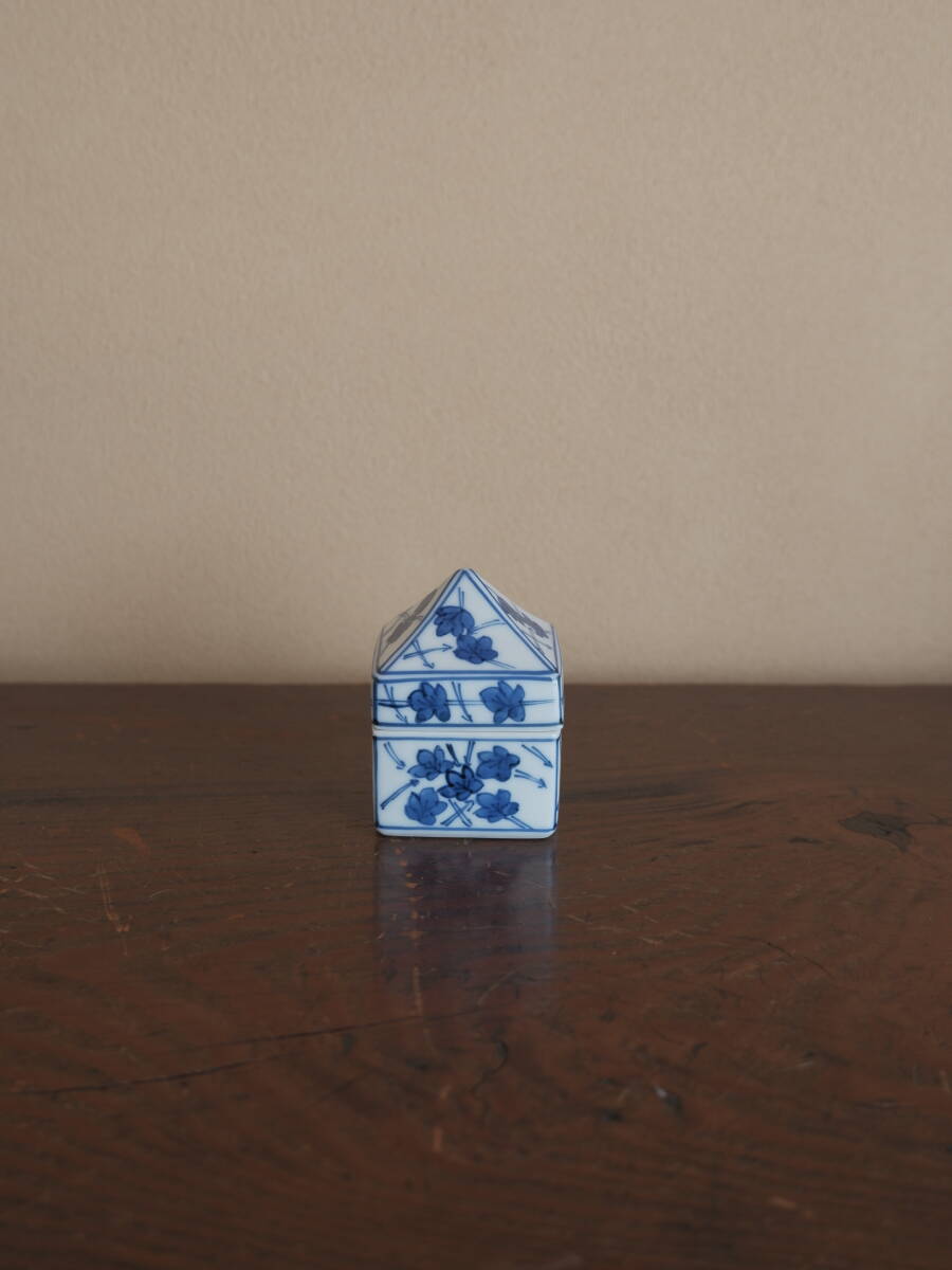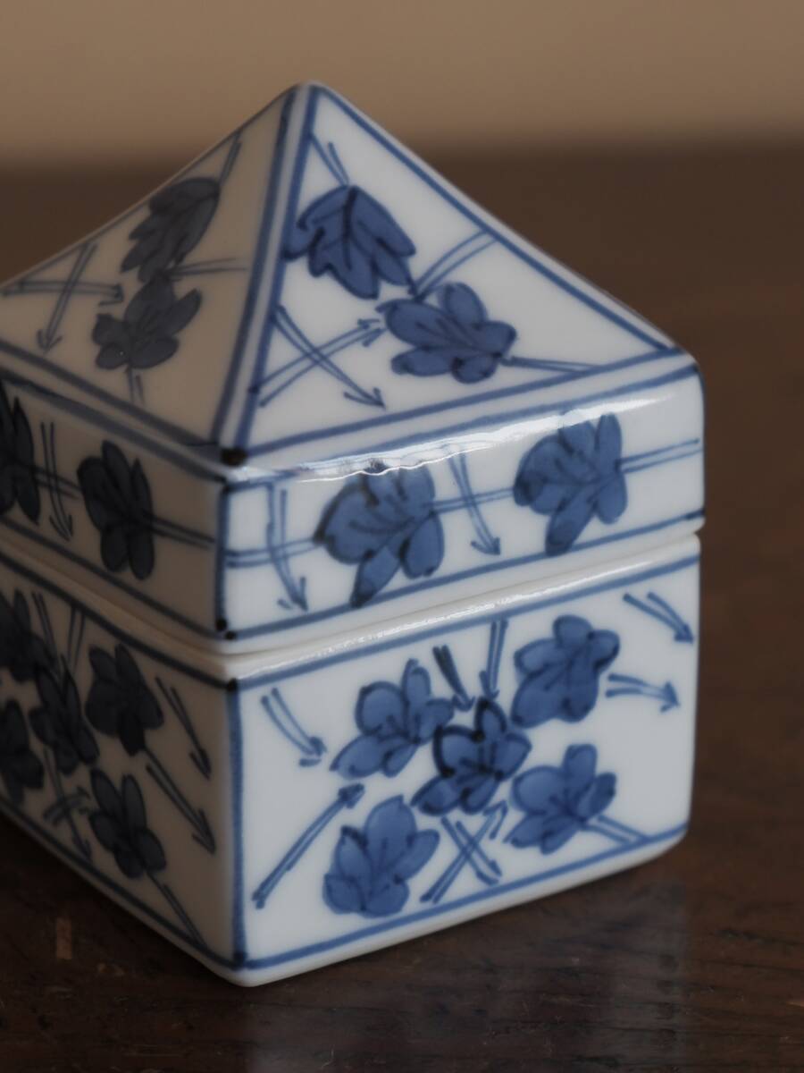 【青枠】手塚祥堂 辻堂 香合 香道具 染付 茶道具 箱付 古道具 時代物 美術品Q1877