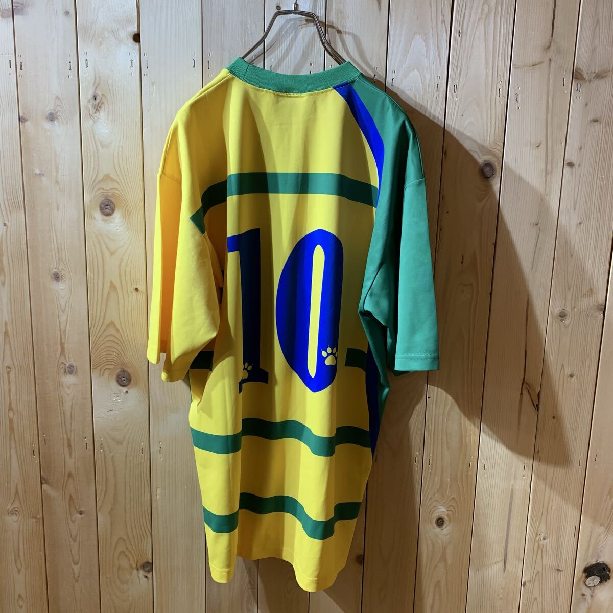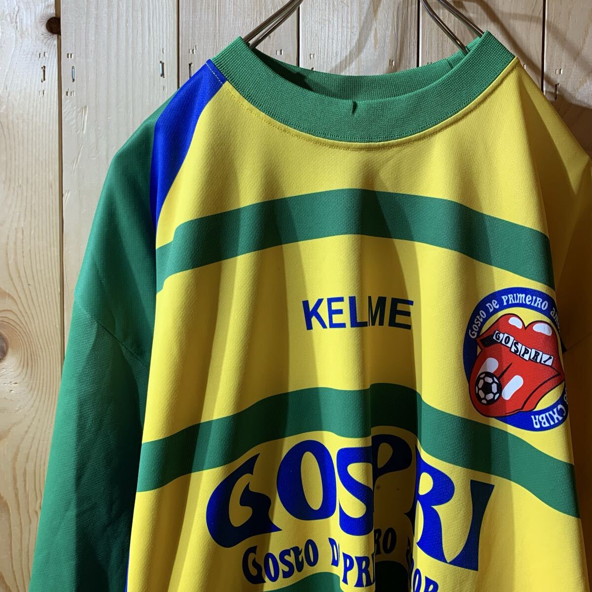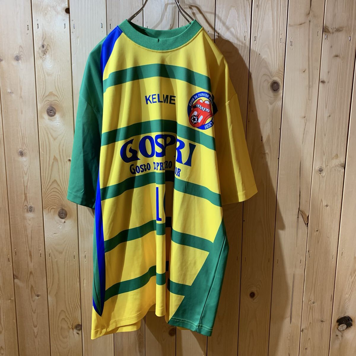 [YUK553]KELME ケルメ サッカー Tシャツ ボーダー 黄色 緑 L