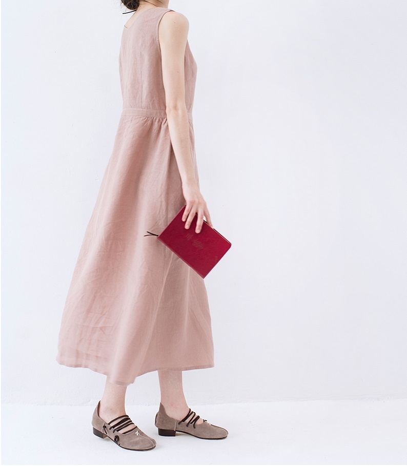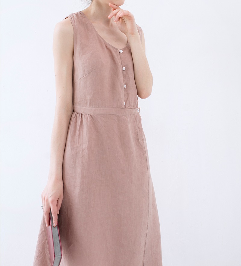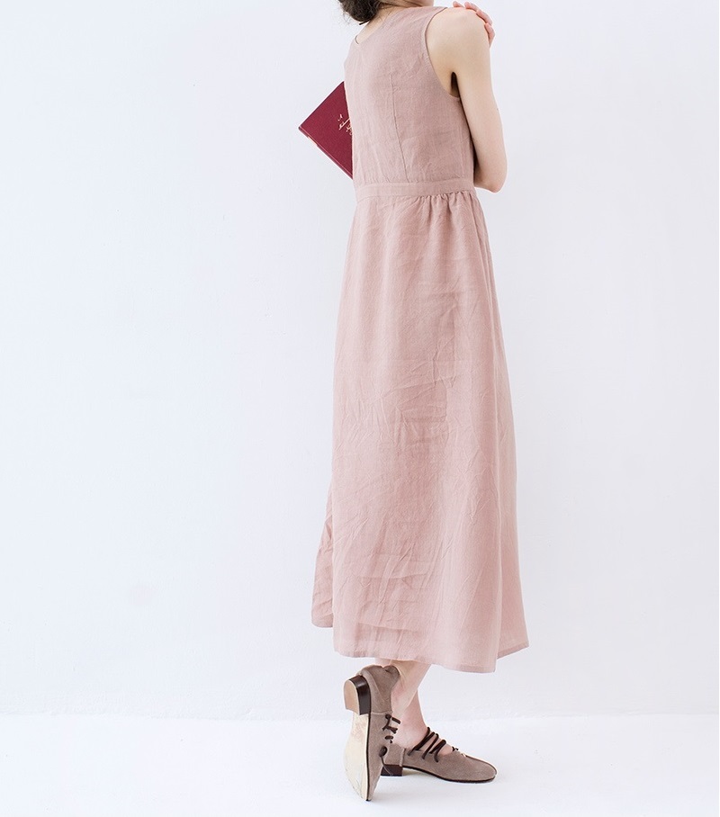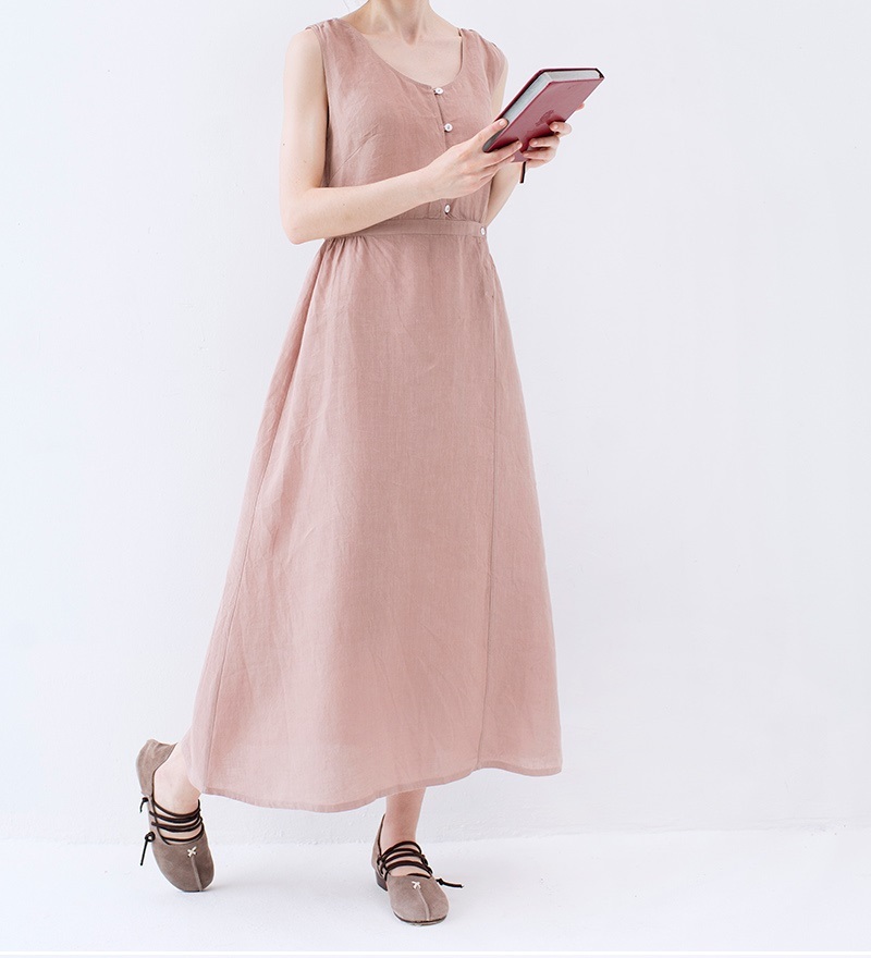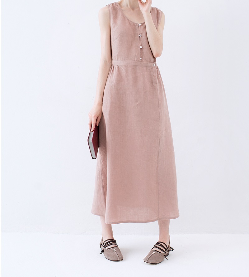 【S】綿麻素材ノースリーブシンプルなロングワンピース♪