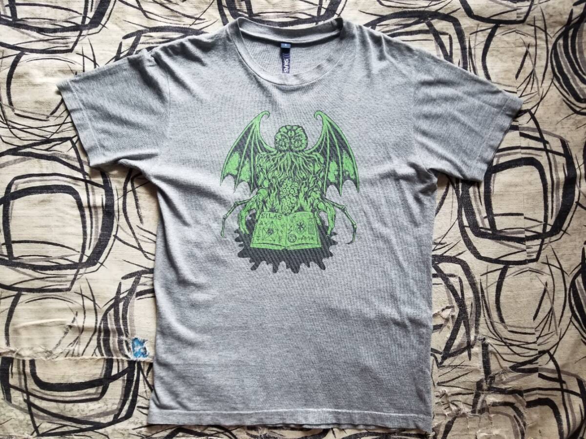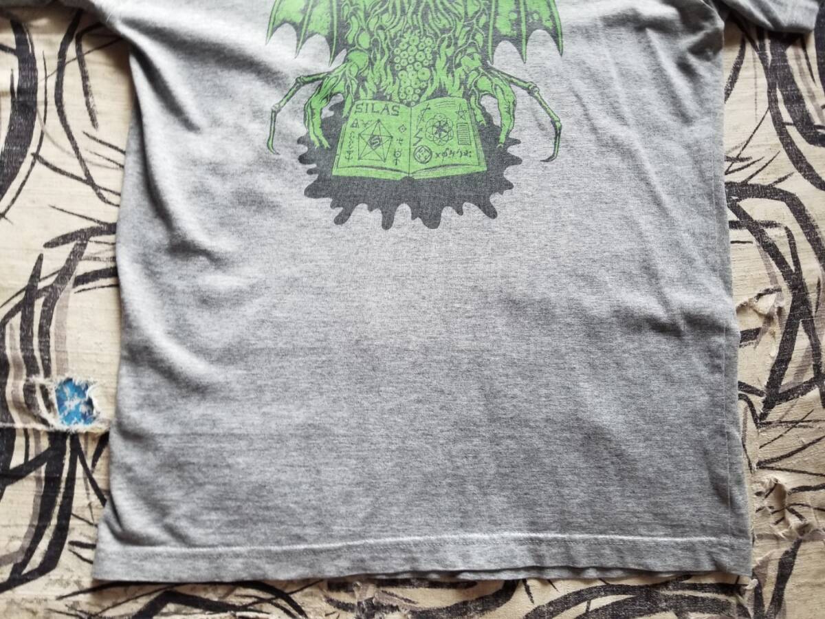 SILAS サイラス クトゥルフ神話 レア 架空の神 邪神 黒蝸牛 宇宙生物 幾何学 シンボル アートワーク デザイン プリント Tシャツ ビンテージ