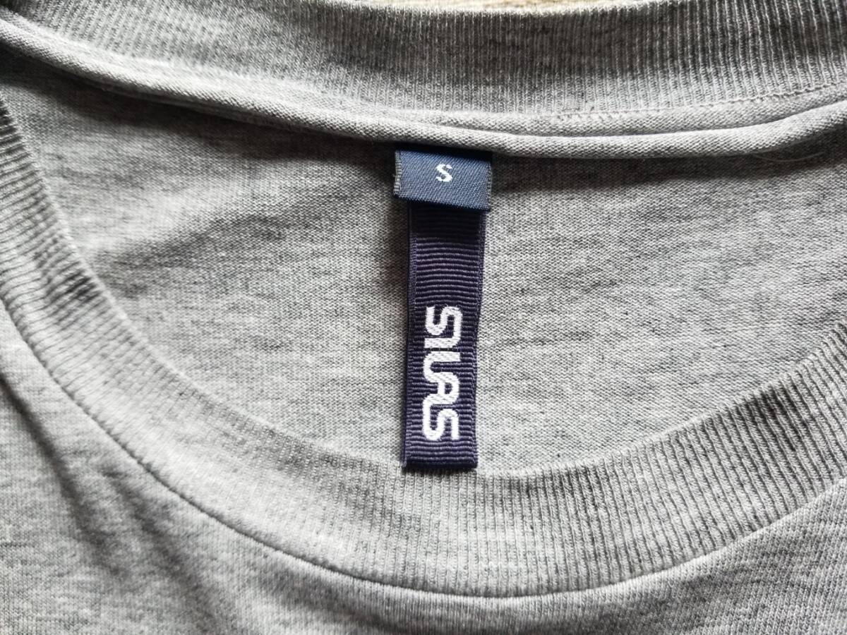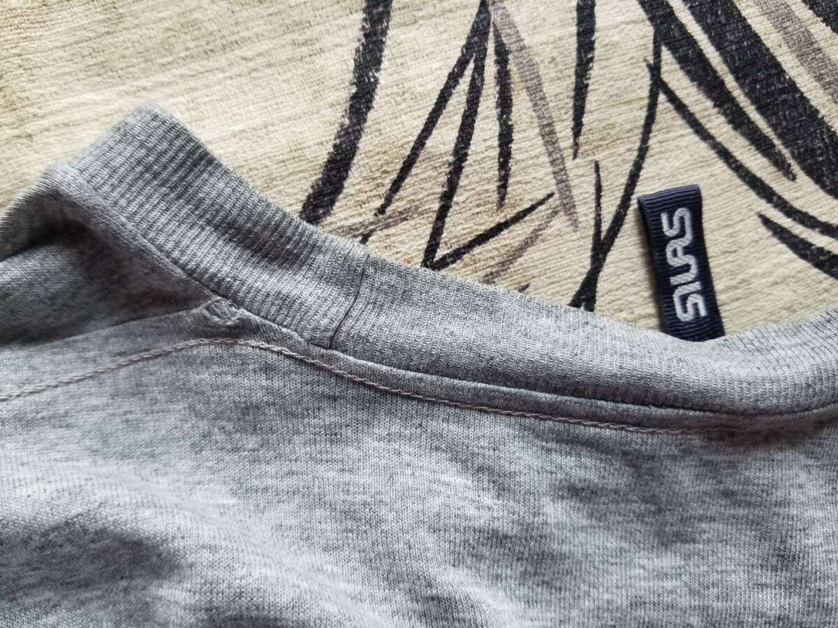 襟リブ付近に生地の解れや若干の毛羽立ち感が伺えます。