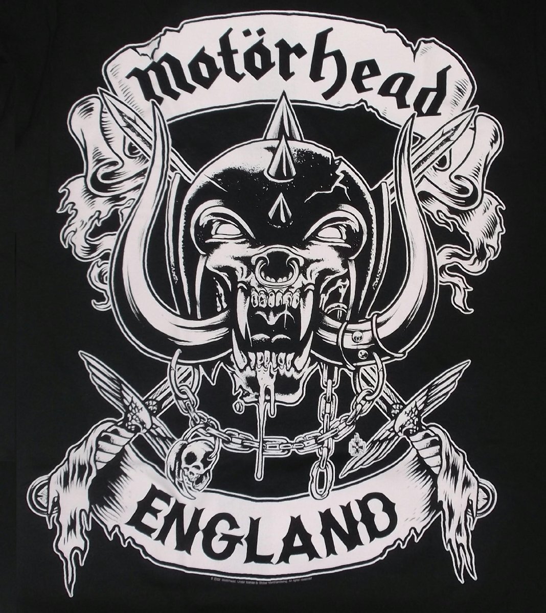 | MOTORHEAD UNISEX T-SHIRT: CROSSED SWORDS ENGLAND CREST 正規品 PUNK/METALの壁をぶち壊し、双方から絶大な支持を受ける、LEMMY KILMISTER率いる英国の重鎮・暴走トリオ、 モーターヘッドのTシャツ「CROSSED SWORDS ENGLAND CREST 」です。 クロスする剣を背景に、モーターヘッドを象徴する代表ICON「WAR PIG」をバイカー/パイレーツ風にアレンジしたCOOLなデザイン! 新品・正規品 Mサイズ 170cm~175cm位の方に良いかと思われます。肩幅44cm、着丈71cm、身幅49cm モデル 161cm , Sサイズ着用 郵メール便送料¥250(代引き不可・紛失補償なし) バンドTシャツ、LUCKY13、RAT FINK、カンパニー系ライセンスTシャツ、ムーンアイズ等取り扱っております。 ** 他にも色々出品中です。 CWBT IWTS | |||||||