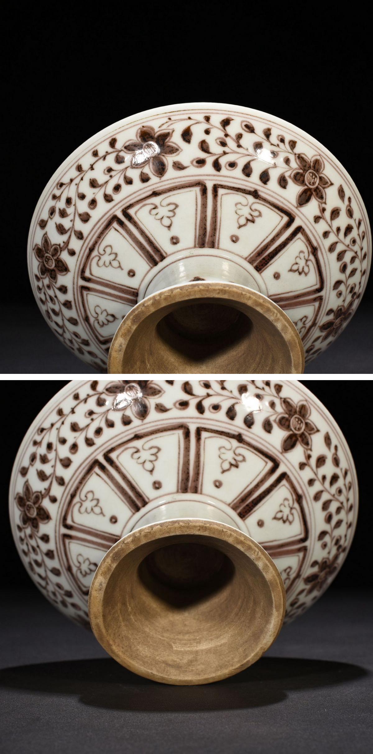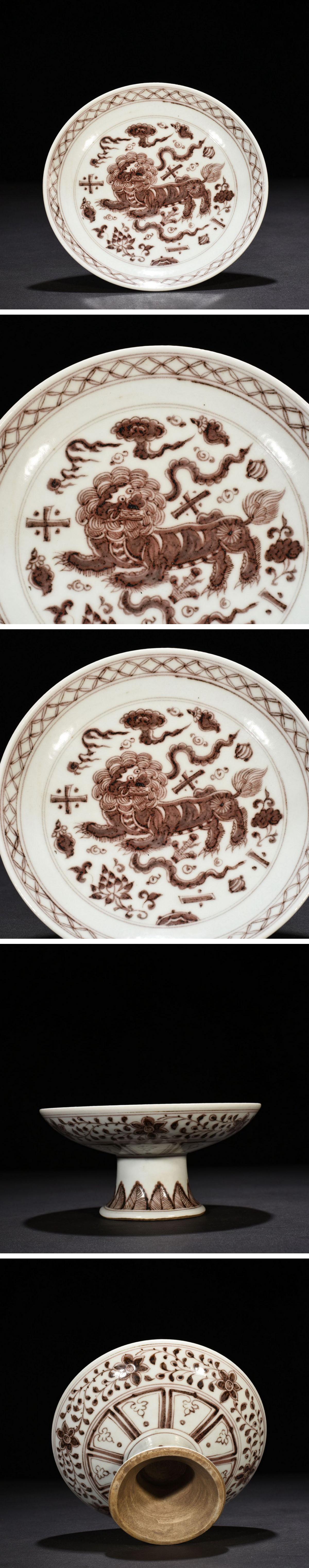 【清】某有名オークション購入 元時代 釉里紅 辰砂 唐獅子紋高足盤 古置物 古擺件 中国伝来 古美術 時代コレクション7L6-ON3