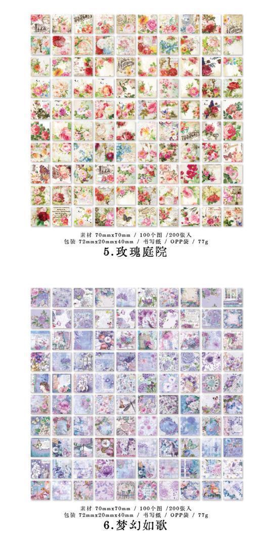大容量!使いやすいミニサイズでアンティークなデザインがおしゃれな素材紙6種セット♪