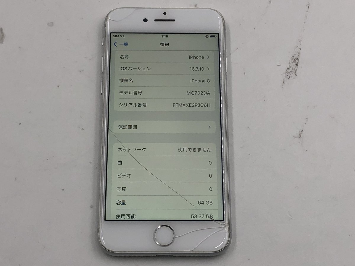 | ■ ♪▲【Apple アップル】iPhone 8 64GB au ○判定 シルバー MQ792J/A 0822 11 ■ |
