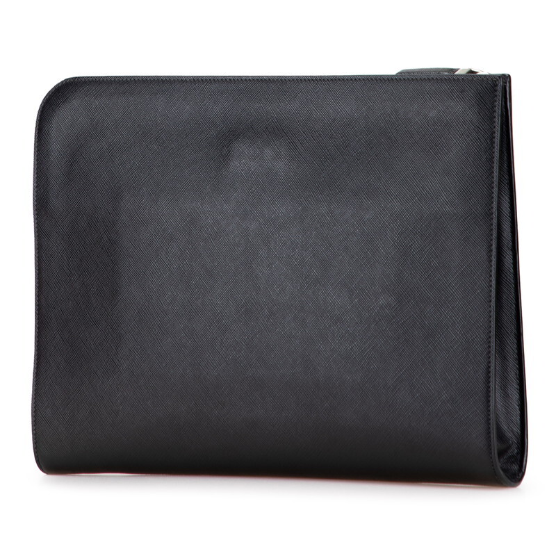 プラダ 三角ロゴプレート クラッチバッグ ブラック サフィアーノレザー レディース PRADA 【中古】