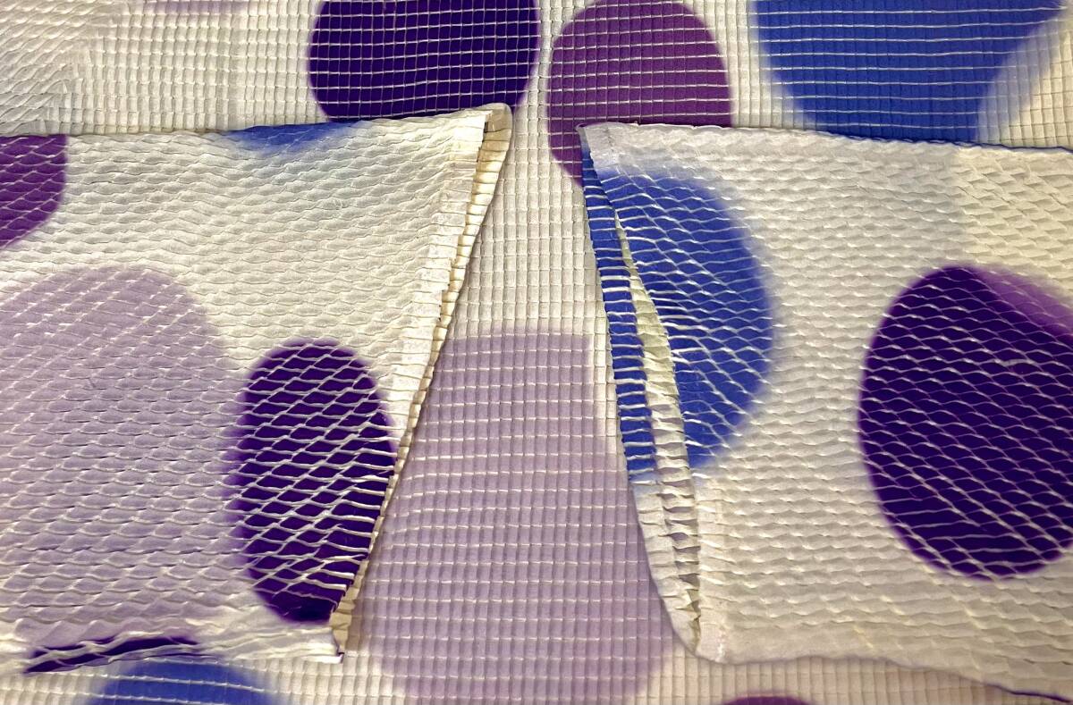 サイズ表記 : 3 着丈 : 約 55.5cm 全幅 : 約 76cm 身幅 : 約 40cm カラー : パープル(変色あり) 状態 : B |