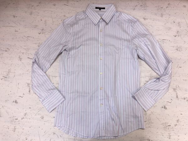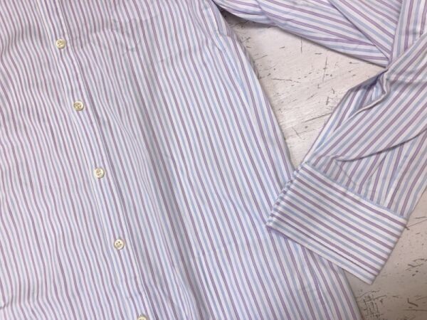 セオリー theory モード フレンチカフス カフリンクス無し ストライプ長袖ドレスワイシャツ メンズ 日本製 38 白/紫