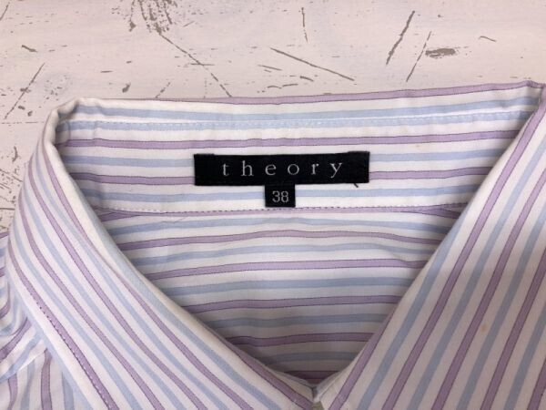 セオリー theory モード フレンチカフス カフリンクス無し ストライプ長袖ドレスワイシャツ メンズ 日本製 38 白/紫 です。