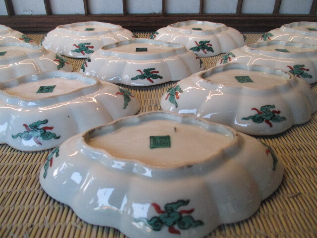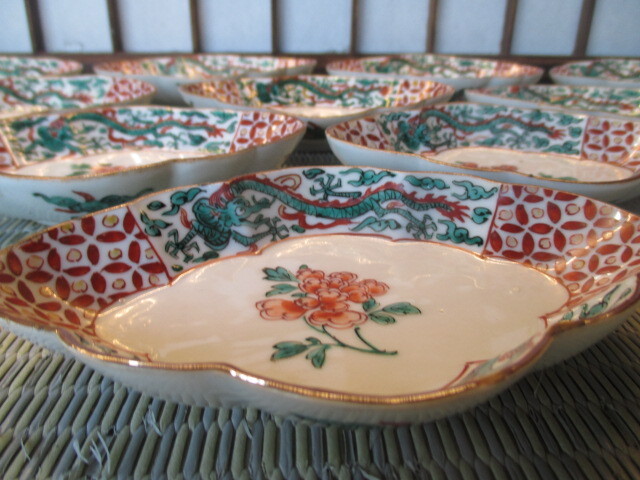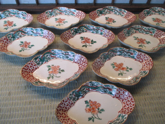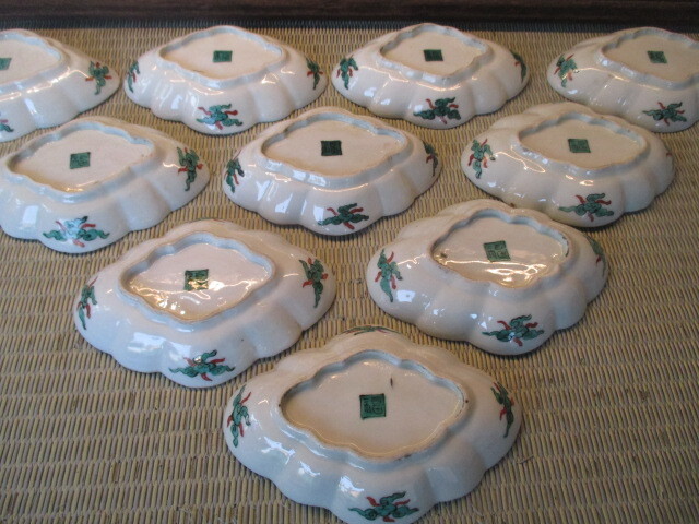 《和》 九谷焼 菱形 色絵刺身皿10客 小ぶり 会席 お店使い  状態良し