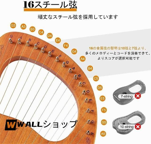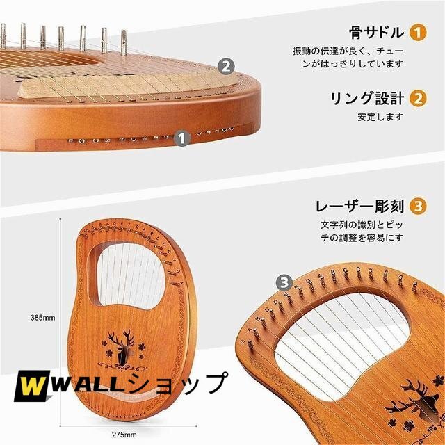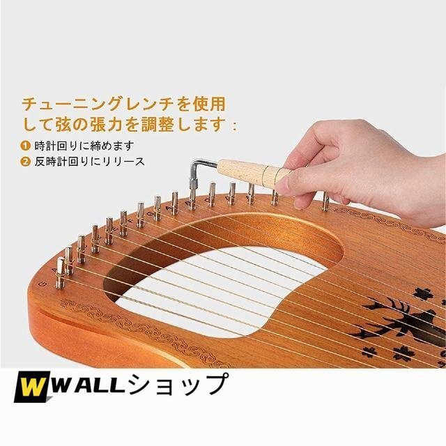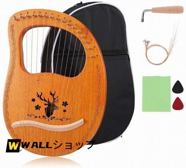 16弦木製ハープ 金属弦 無垢材 弦楽器 初心者 ニッチ楽器 ポータブル ハープセット 竪琴 弦楽器 心癒し 収納バッグ付き
