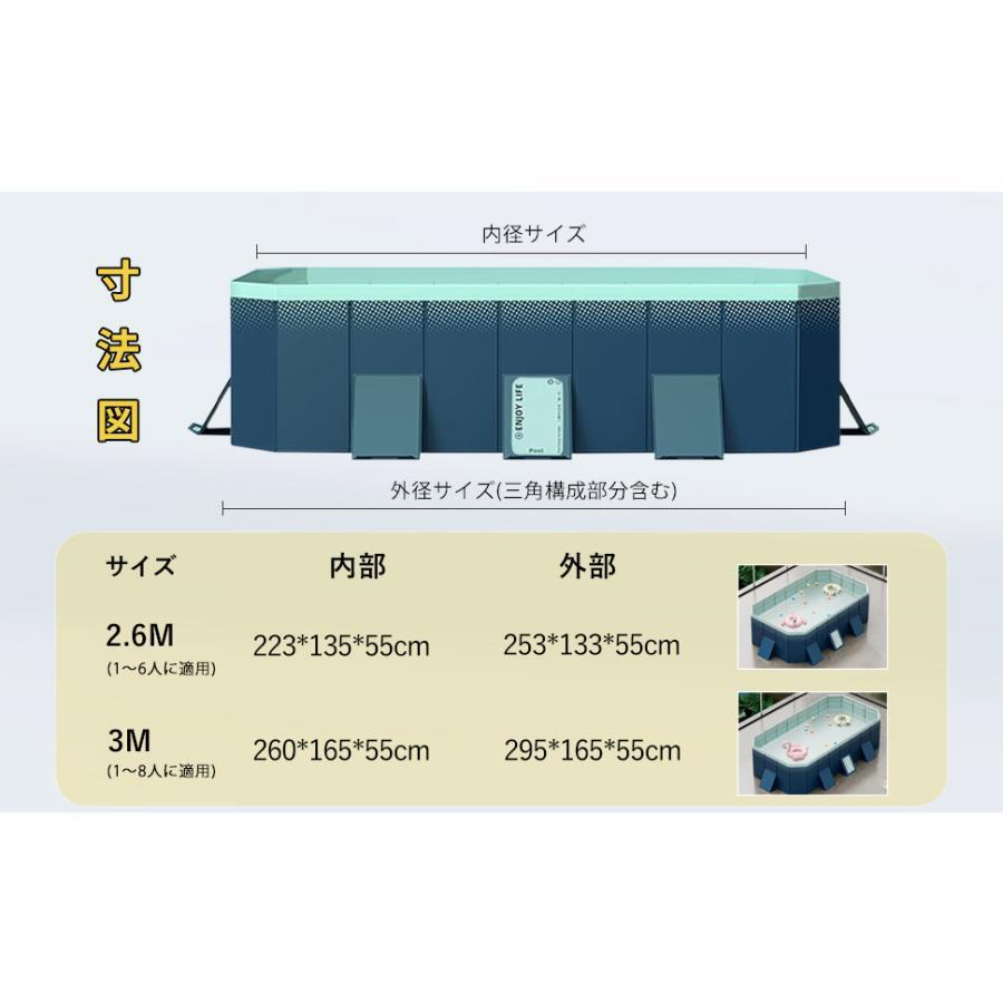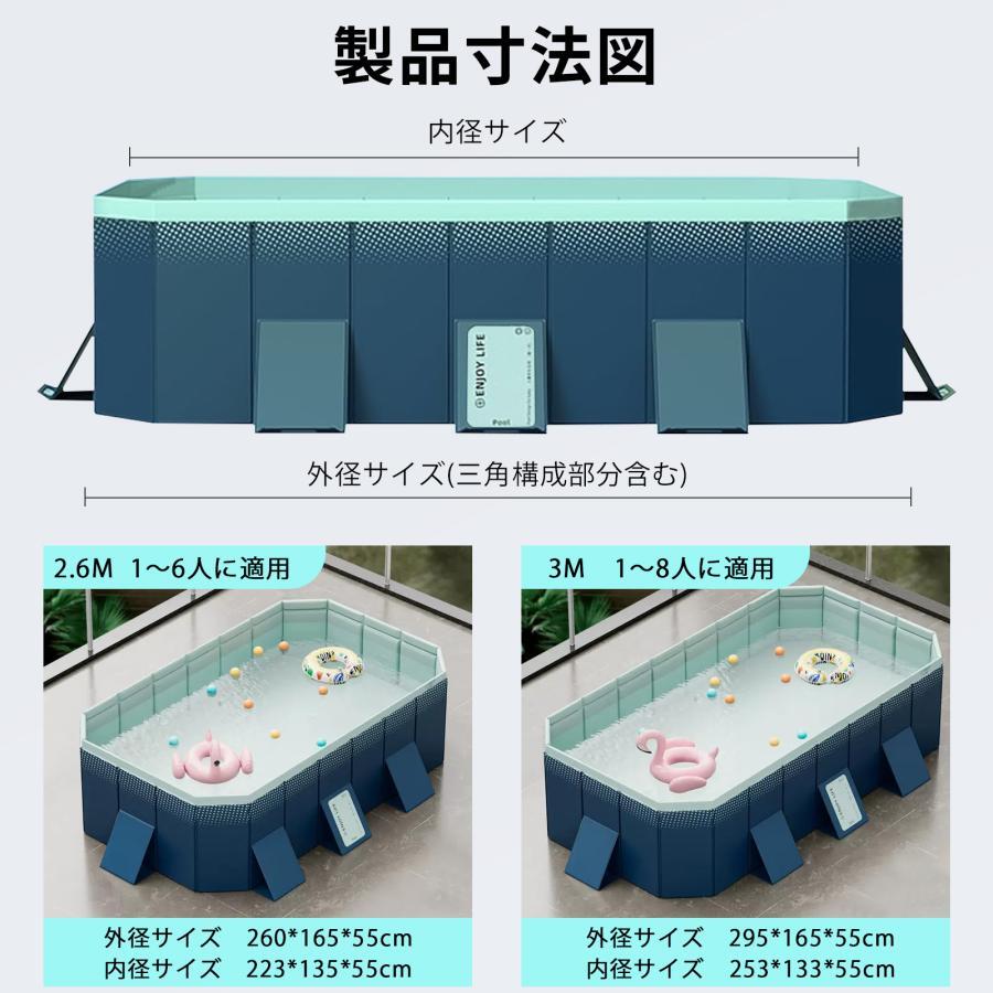 プール 大型子供用折りたたみプール 非膨張式で充気不要 アップグレードされたPVC素材のスイミングプール 庭 水遊び 屋外用(青, 2.6m)