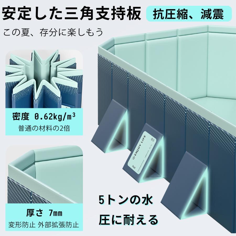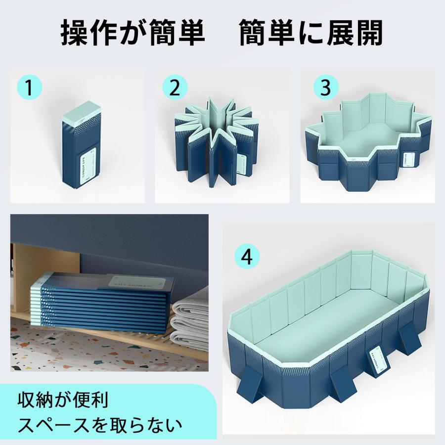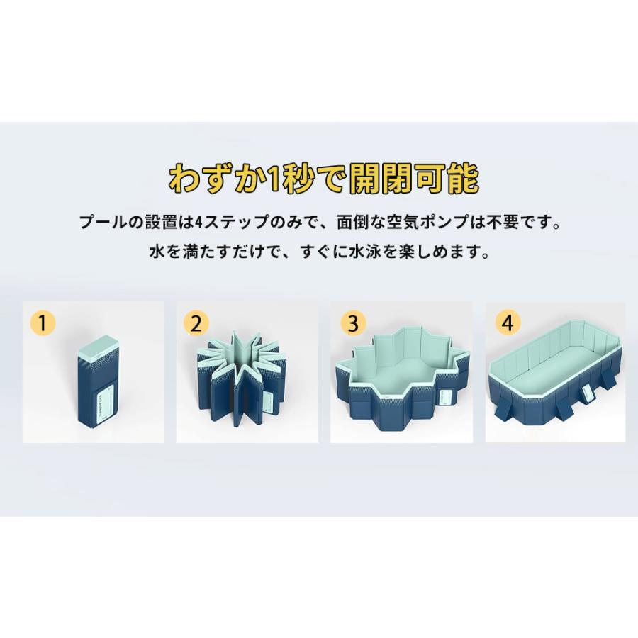 【折りたたみ式プール、充気不要で収納も簡単】新型の折りたたみ式プールは、プールの接続部分を強化し、側面の漏れや変形を減少させました。迅速に展開でき、組み立てる必要がなく、膨張式プールと比べて、空気が漏れないため、より簡単で迅速、また耐久性があり安定しています。