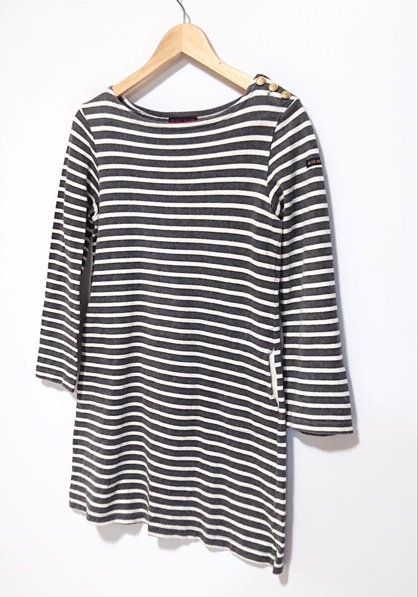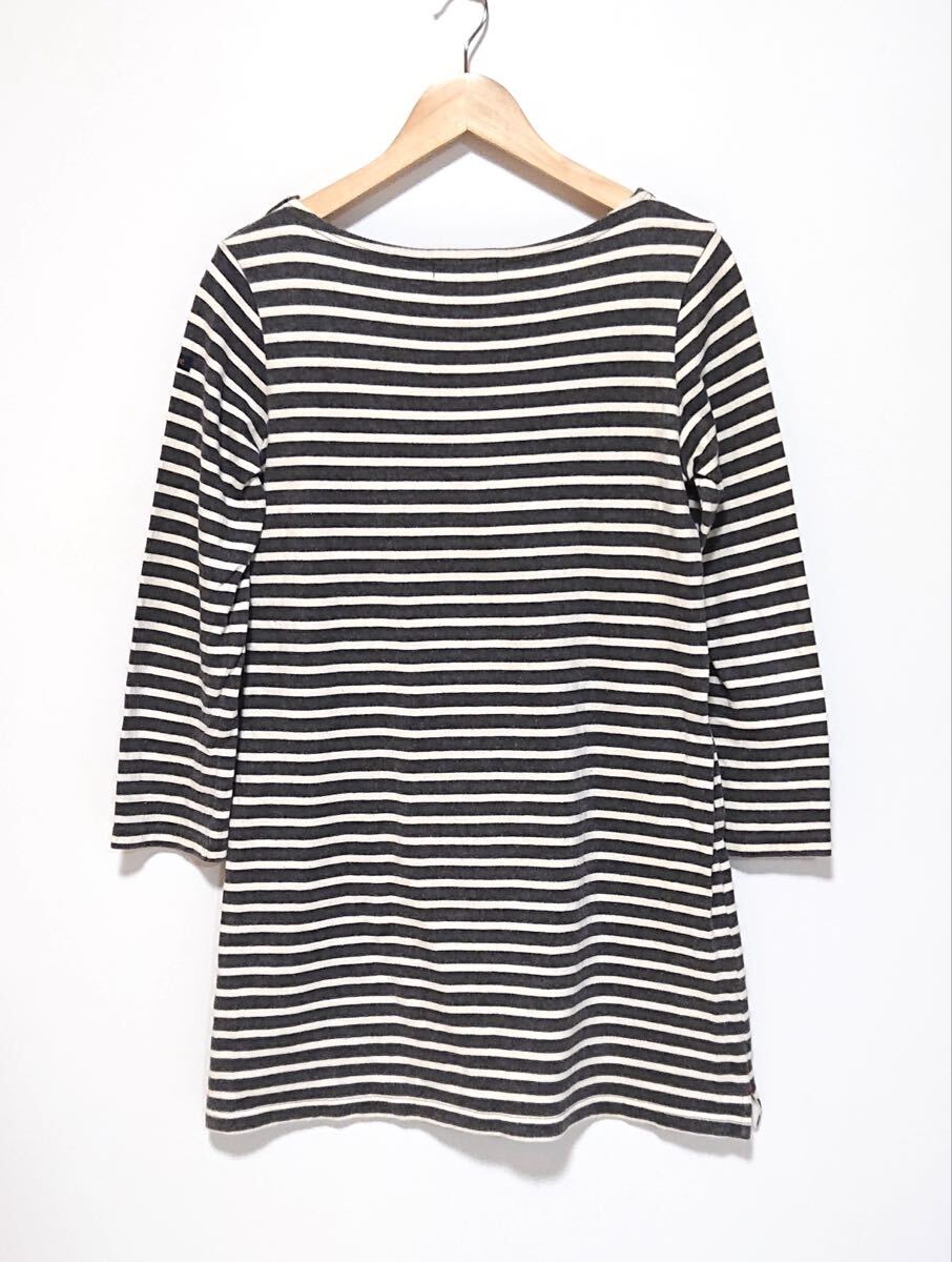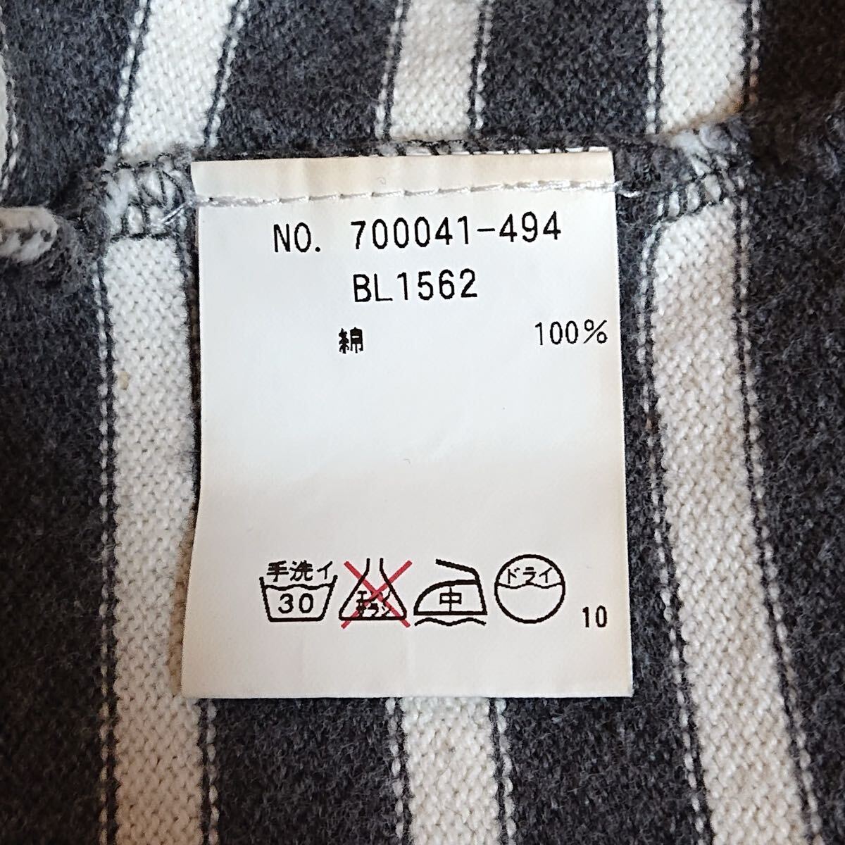 h4130gg 日本製 BLUE BLUE(ブルーブルー)サイズM位 チュニック ボーダー グレー×ホワイト レディース カジュアル 綿100% 長袖 シンプル