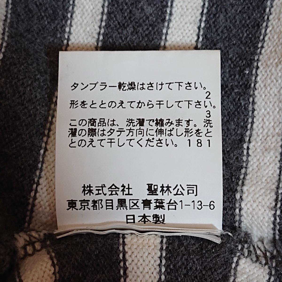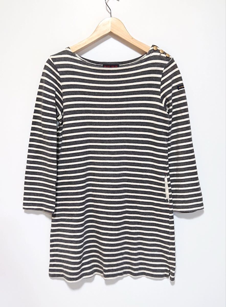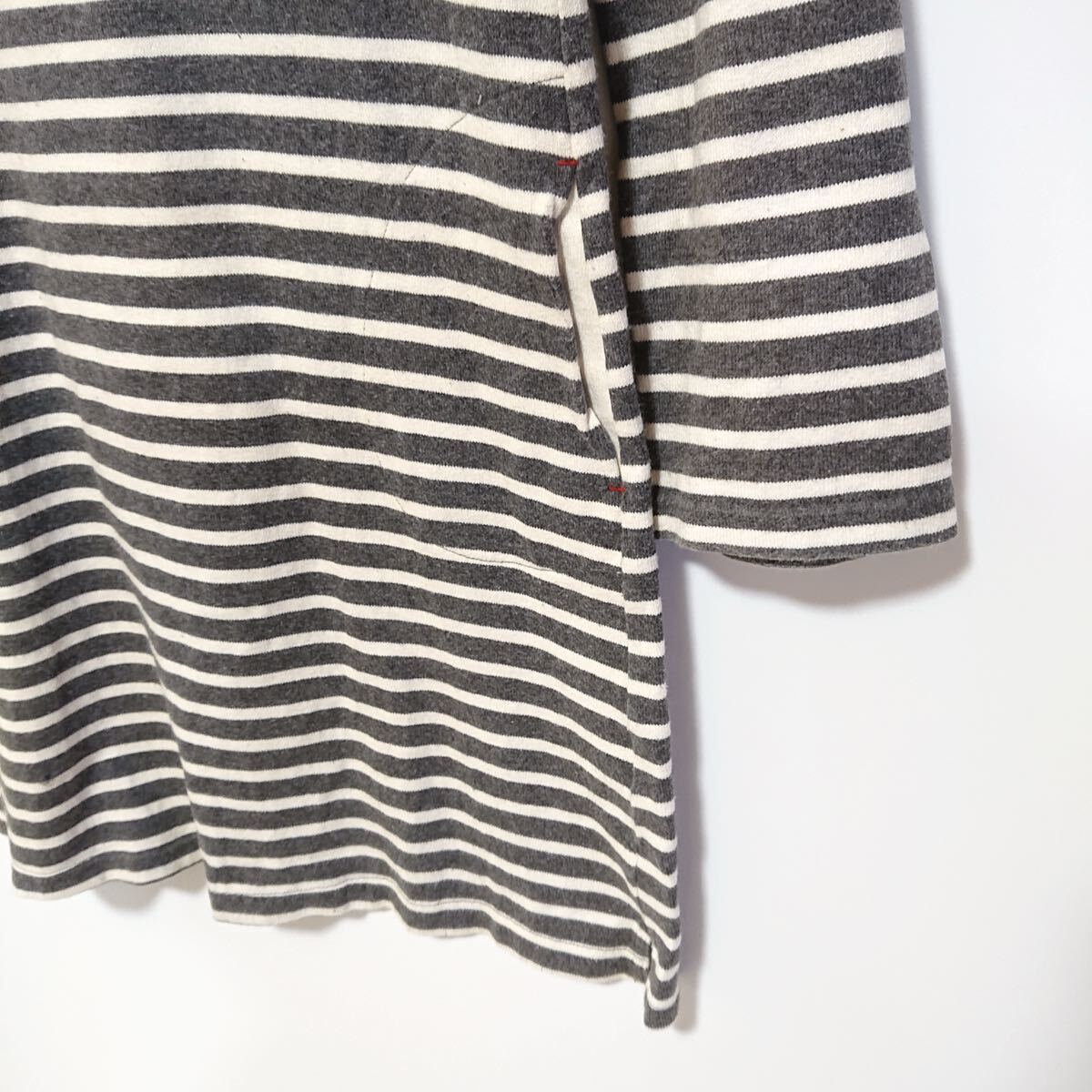 h4130gg 日本製 BLUE BLUE(ブルーブルー)サイズM位 チュニック ボーダー グレー×ホワイト レディース カジュアル 綿100% 長袖 シンプル
