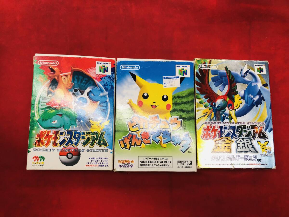 ポケモンスタジアム 金 銀 ポケモンスタジアム2 ピカチュウ げんきでチュウ 箱説 操作マニュアル 付 3本 セット