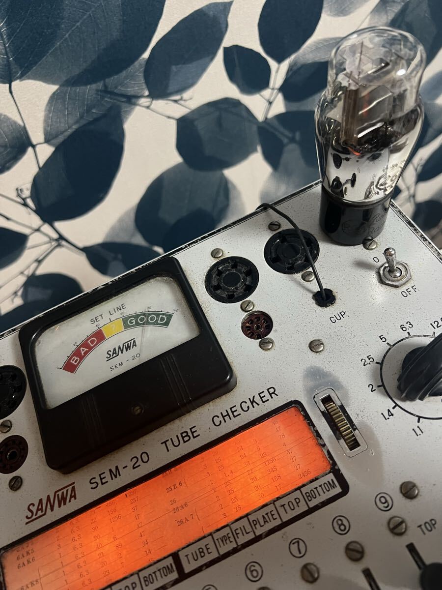 当方の試験機で同型式の未使用の真空管を試験すると80程度の値を示しますので基準として参考にしてください。