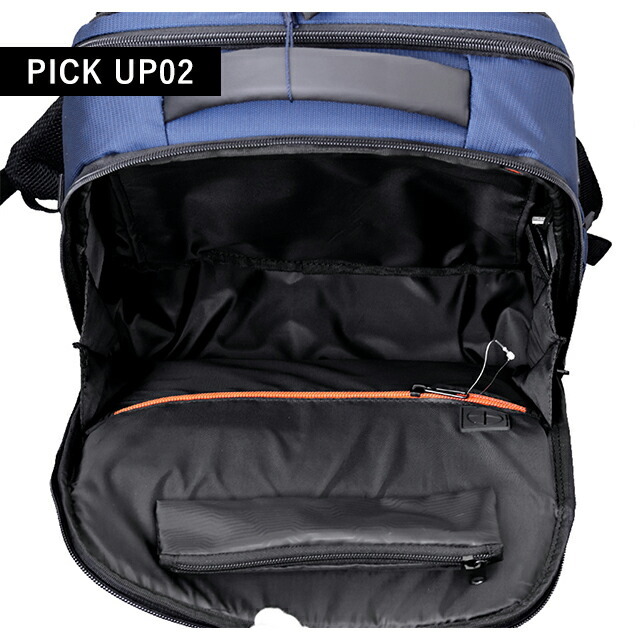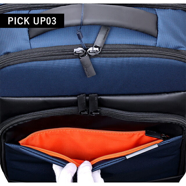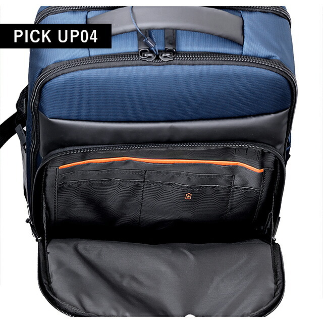 | 仕様 | 開閉:ダブルファスナー式 ・外側1 フロントジッパーポケット×1 ・外側2 フロントジッパーポケット×1 (オープンポケット×5、ペンポケット×1) ・1 オープンポケット×1 ジッパーポケット×1 ジッパーポーチ(取り外し可能) 内臓USBポート ・2 PC収納ポケット×1 タブレットポケット×1 タイダウンストラップ サイドポケット×1 ショルダーポケット×1 |