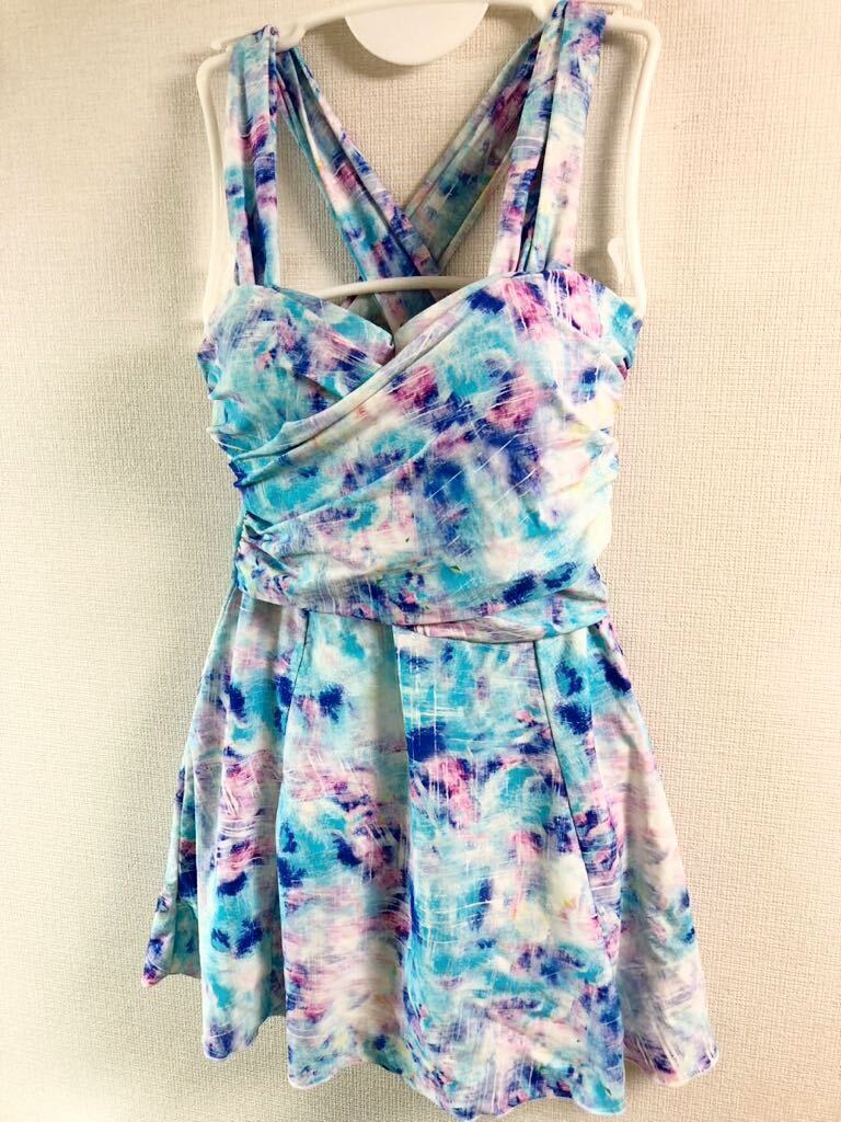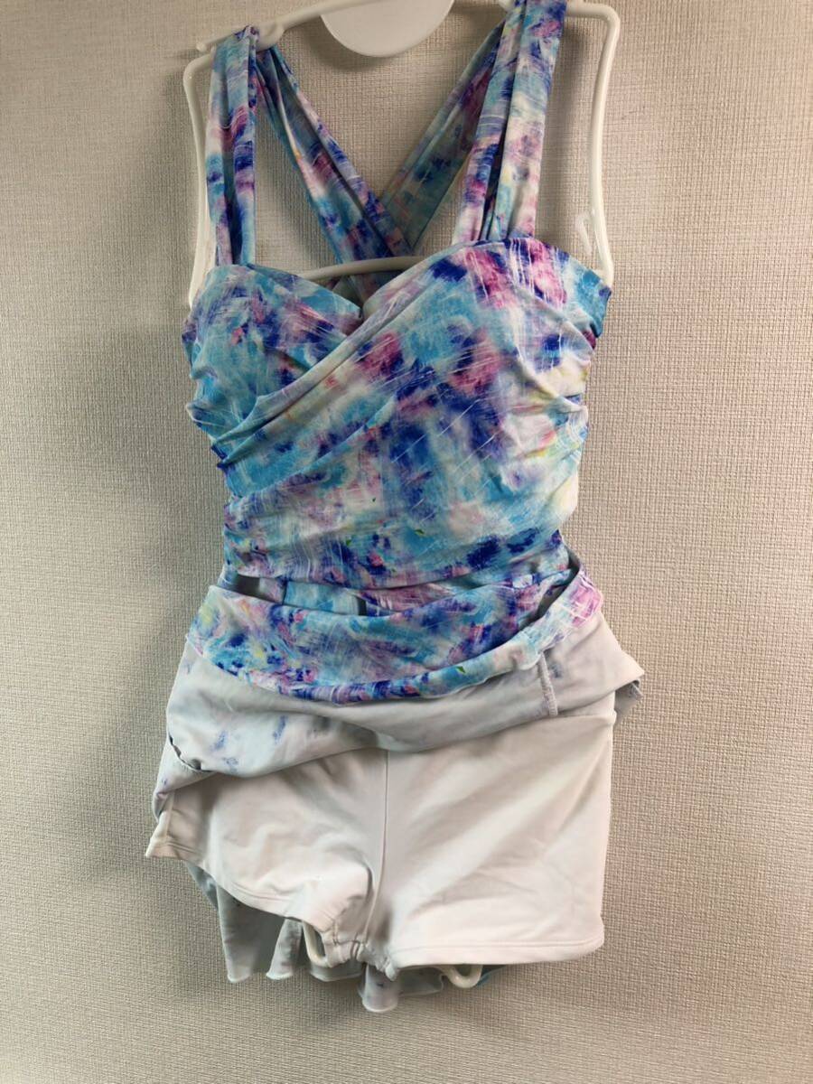 ワンピース水着 スイムウェア L ひらひらスカート クリーニング済み 24-0805-05